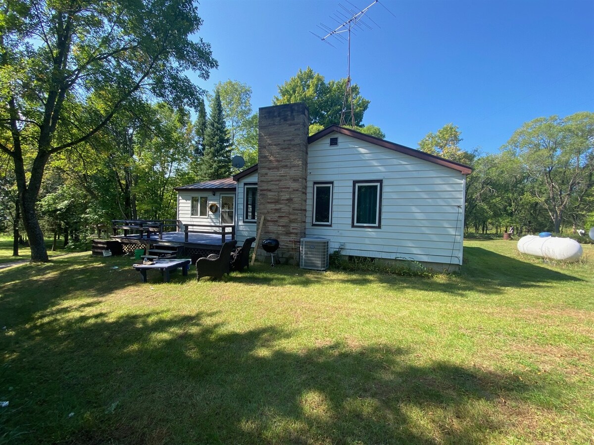 ¡Relájate en este espacio tranquilo y acogedor! Disfruta de la tranquilidad de los Northwoods con acceso cercano a la pesca, la caza, los lagos y los restaurantes. ¡La cámara del timbre de Blink está instalada en el porche delantero! Disfruta de una cocina completa con todo lo necesario para preparar comidas. ¡Disfruta viendo la hermosa puesta de sol junto al bosque,chimenea, parrilla, patio grande, CA, lavadora y secadora, chimenea eléctrica, wifi, sábanas y ropa de cama! El segundo dormitorio tiene cama de tamaño completo y escritorio. Leña apilada por cobertizo para usar con fogata no dividida