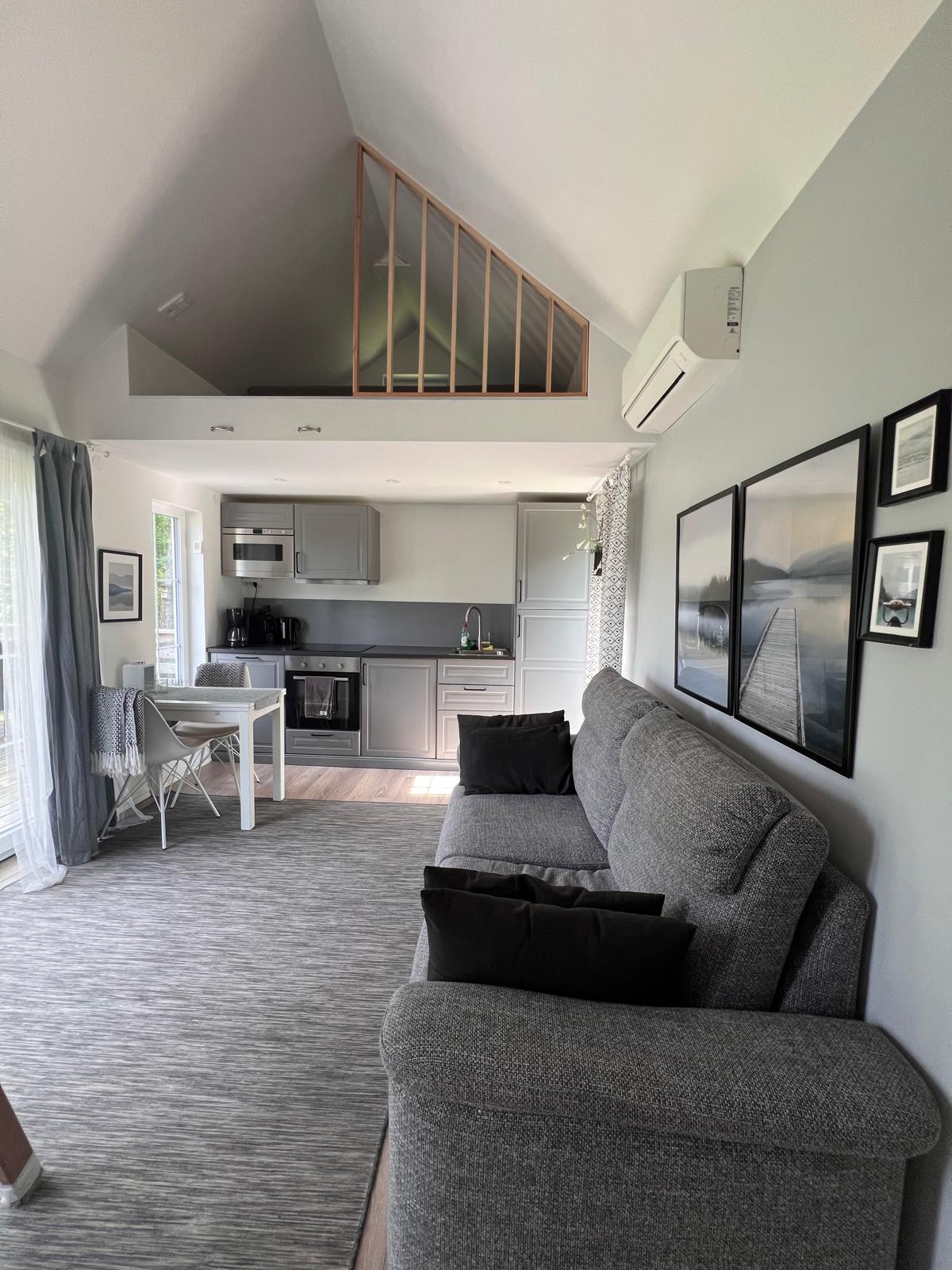 Departamento de invitados de nueva construcción con loft para dormir de unos 40 metros cuadrados. Atardecer con sol después del almuerzo. Aire acondicionado. A unos 330 metros del lago y la posibilidad de nadar desde el embarcadero. Y a unos 500 metros de la zona de piscina con playa y torre de buceo. En el centro, existe la posibilidad de alquilar un kayak o SUP. Estacionamiento gratuito y CONEXIÓN WI-FI. Cama de 160 cm en loft y sofá cama de 140 cm en la sala de estar. Televisión inteligente de 65 pulgadas con Chromecast, Apple TV y Playstation 4. No hay una altura total de pie en el loft. A unos 15 minutos a pie de la estación de tren de Floda.