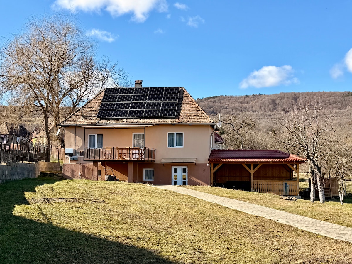 Nuestro alojamiento es una casa de fin de semana de 5 dormitorios en el corazón de Transilvania, en la provincia de Hargita, en un pequeño pueblo tranquilo, Nagyked, donde nuestros huéspedes pueden experimentar la paz y la tranquilidad en la naturaleza. En el alojamiento, nuestros huéspedes tienen a su disposición un amplio patio, aparcamiento cerrado, sala de bienestar al aire libre con bañera de hidromasaje y sauna (no incluido en el precio), parque infantil, terraza al aire libre con zona de barbacoa y bicicletas. El lugar es adecuado tanto para familias como para grupos de amigos.