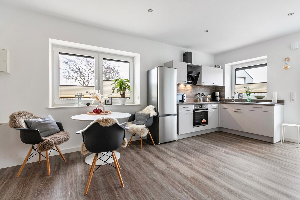 «Heimat am Meer»: acogedor apartamento de vacaciones cerca de Büsum ¡Bienvenido a tu oasis de bienestar en el mar del Norte! El apartamento de la planta baja tiene capacidad para un máximo de 4 personas con 2 dormitorios: una cama con somier y 2 camas individuales. El apartamento cuenta con una cocina totalmente equipada, un televisor inteligente de 55 pulgadas, una terraza y una silla de playa privada en verano. También hay disponibles bicicletas y un cobertizo con cerradura. Aparcamiento gratuito justo en la casa. ¡Perfecto para relajarse en la costa!