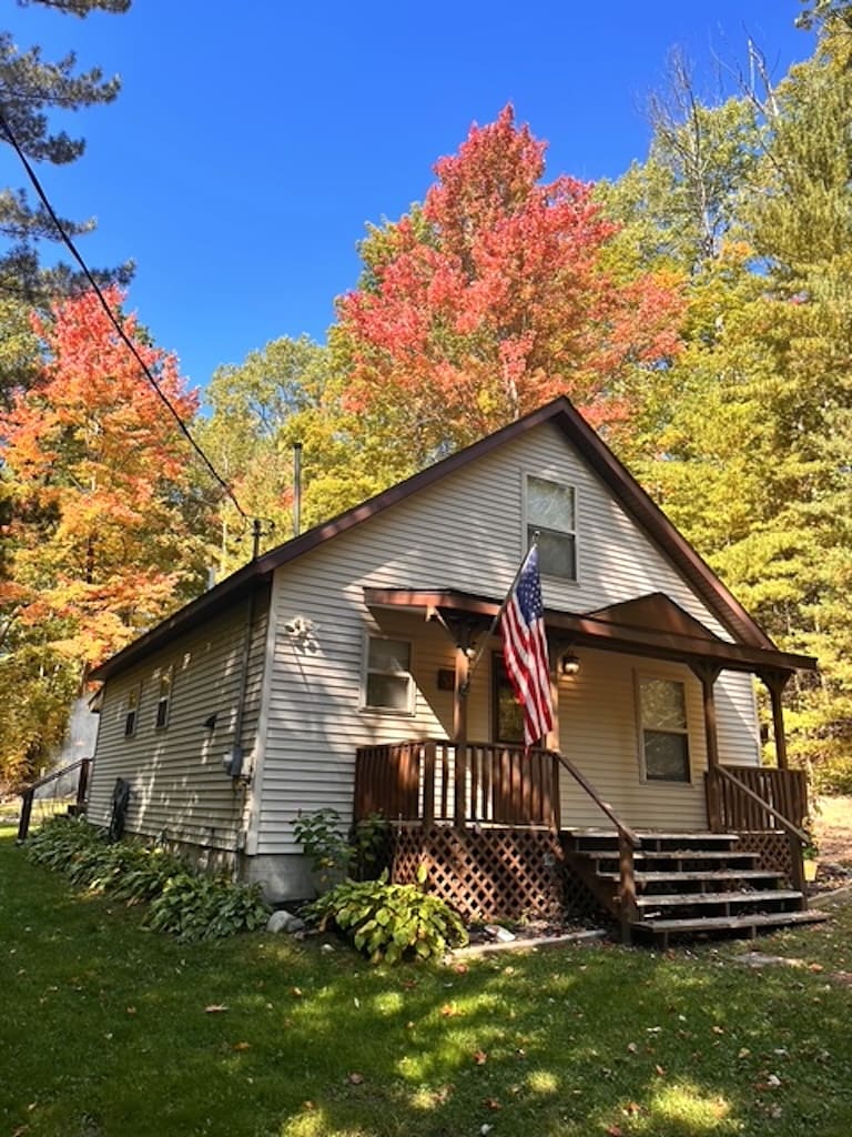 If you need a spacious retreat for family and friends, this is it! Our cottage has 8 beds, an in-ground pool with a covered patio, a fire pit, and a large yard with toys for all ages. Surrounded by 5 golf courses, state parks, rivers, and just one block from breweries and entertainment. This unique stay includes full access to both homes on the property—The Bunk House and The Main House—offering a combined 5 bedrooms. The Bunk House is closed through December through mid march.