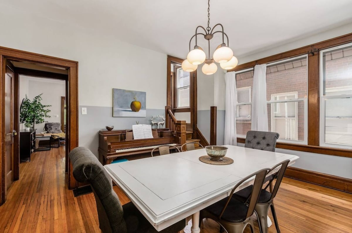 ✨ Spacious 4BR/3BA in a renovated 1900s duplex! 🏡 Walk to OSU: Just 10 min on foot to campus! - Short Uber to Short North: Enjoy restaurants, bars & galleries. 🛏️ Bedroom 4 Bonus: 3 queens + private bath (available for 4+ guests). 🐶 Pet-friendly. $35/day per dog (max $200/month). 🚗Includes 2 parking spots behind home. Flexible Stay: Book this half of the duplex, or reserve both for larger groups (Iuka II available) Perfect for families, friends, or OSU visitors seeking historic charm!