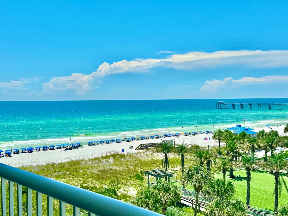 Pelican Beach Resort 1710, 17th floor 1 Bedroom 2 Bathroom 873 sq.ft. condo with Wifi, Free Parking, Cox Ultimate Cable TV, Beach Chairs, Umbrella aiming best class service is right on the beach with great views of Gulf Coast from the balcony. No road crossings, just go down and enjoy our private beach Pelican Beach offers the dream vacation with BEST views, sand and sea in the area at 5 minute drive from heart of Destin, Harborwalk Village and across Big Kahuna Water & Adventure Park.