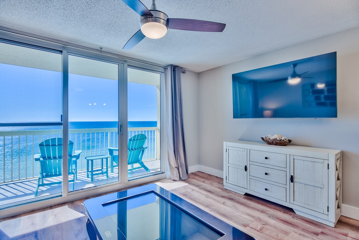 Apartamento de 1 dormitorio y 2 baños recientemente renovado con literas incorporadas. Situado junto a la playa, en el piso 19, con impresionantes vistas panorámicas a las aguas esmeralda y las playas de arena blanca prístina del golfo de México. Cocina totalmente surtida con nuevas encimeras de granito y electrodomésticos de pizarra. Internet de alta velocidad fiable y rápido en todas partes. Los servicios del centro vacacional incluyen una gran piscina y jacuzzi, un bar tiki junto a la playa que sirve bebidas heladas y cerveza. Una fabulosa cafetería que sirve desayunos calientes, pizza, sándwiches y ensaladas.