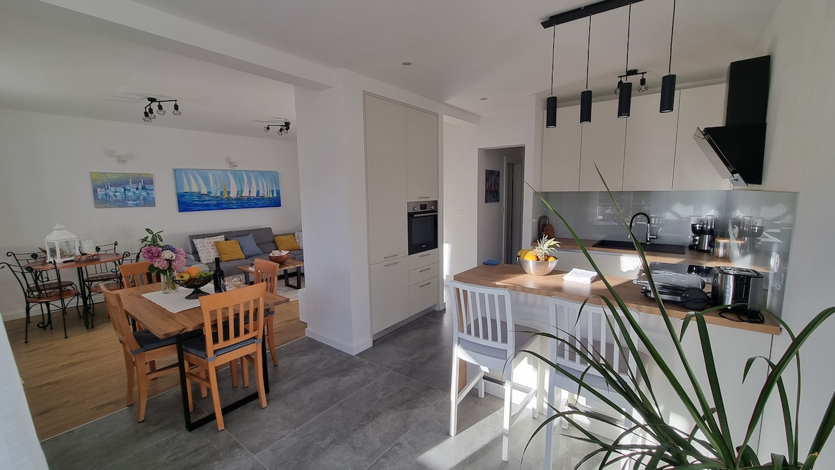 Disfruta de este espacioso apartamento lleno de sol, diseñado para sentirte como en casa lejos de casa. Nuestro apartamento está a solo 15 minutos en coche del aeropuerto internacional de Split. Nuestro alojamiento está hecho para disfrutar de mañanas tranquilas, beber café recién hecho de la prensa francesa, comer frutas frescas del mercado cercano y admirar las vistas al mar. La Great Escape Suite está rodeada de hermosas playas de piedra de guijarros. La bahía más cercana está a solo 4 minutos. Por las noches, visita la ciudad de Trogir.