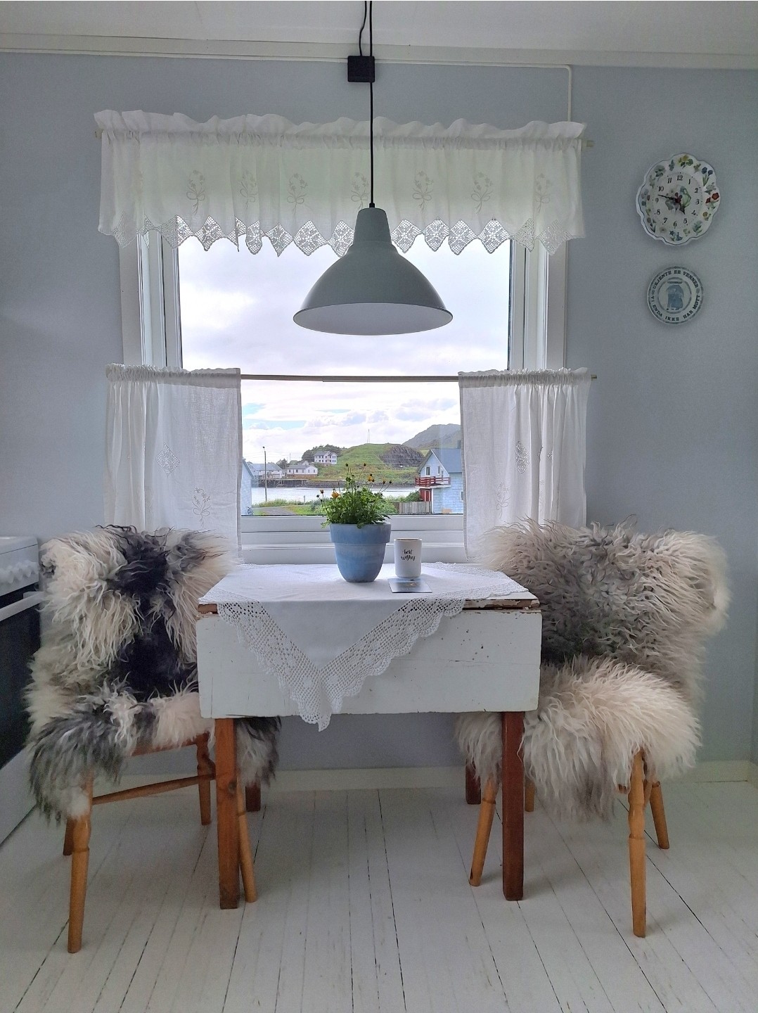 Velkommen til Farmorhuset i Nykvåg, midt i vakre Vesterålen. Huset er bygd i 1954 og kombinerer nostalgisk 50-tallsstil med dagens bekvemmeligheter for et komfortabelt opphold. Jeg har arvet dette huset av min far, som igjen arvet det av sin mor, og det har derfor vært viktig for meg å bevare husets sjel og historie. Farmorhuset har tre soverom med totalt fire senger, noe som gjør huset perfekt for både små familier og vennegjenger.