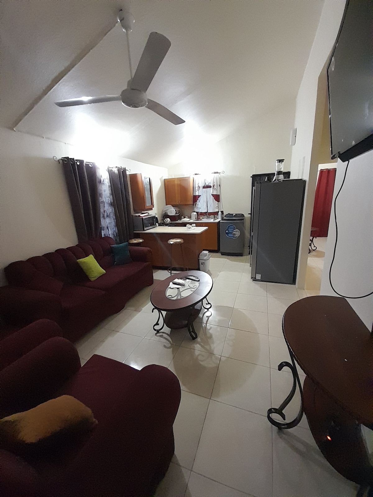 Esta propiedad se encuentra en una comunidad cerrada que ofrece seguridad y patrullaje las 24 horas. La comunidad está a 2 minutos del centro de la ciudad de Old Harbour y a 3 minutos de la autopista. La propiedad tiene 2 dormitorios y 1 baño con una cocina de planta abierta y sala de estar. La propiedad tiene wifi y aire acondicionado (AC) que se encuentra en ambas habitaciones, así como ventiladores en ambas habitaciones y en la sala de estar. La televisión inteligente se encuentra en la sala de estar y da acceso a la televisión por cable y a Netflix.