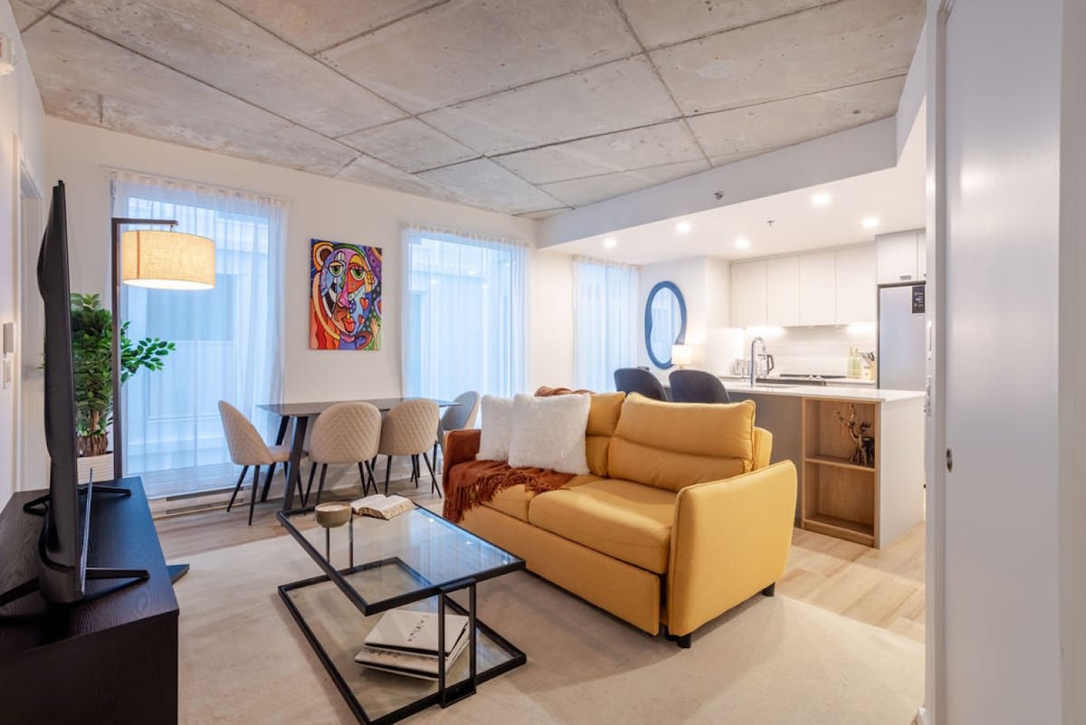 ¡Disfruta de tu estancia en el centro de la ciudad! ¡Nuevo TDC 2 de lujo en el centro con acceso directo al Bell Center! ¡Disfruta de la comodidad de nuestro apartamento de un dormitorio totalmente amueblado y equipado con balcón privado propio! Tu estancia incluye acceso a sauna, piscina, gimnasio, salón panorámico, sala de juegos, salón y terraza con múltiples barbacoas. Aparcamiento subterráneo gratuito, con el metro a pocos minutos. Sin salir, la ciudad es tuya para explorar. Además, relájate con Netflix de cortesía para disfrutar de una estancia perfecta.