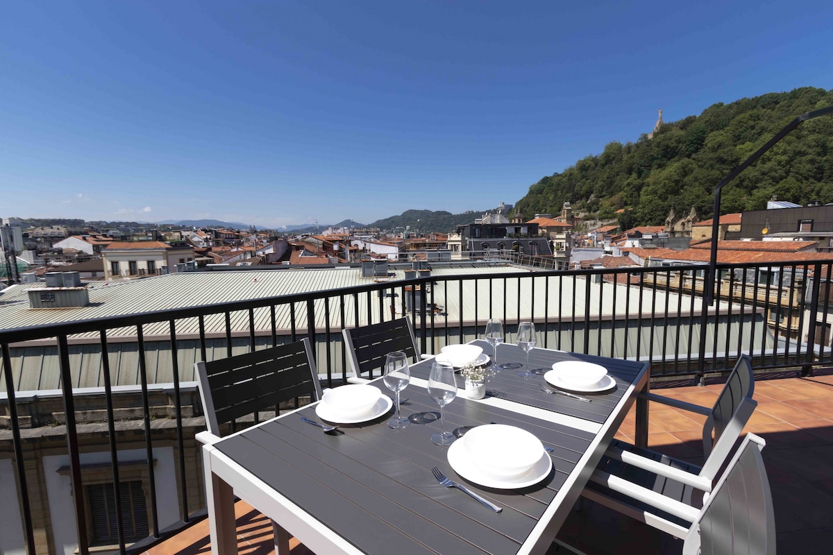 (Registro Viviendas de Uso Turístico de ESS01177). Apartamento nuevo, muy luminoso con terraza. 36 m2. Tiene una habitación con cama de matrimonio. Ideal para parejas. El piso se encuentra en una ubicación inmejorable, en el corazón de San Sebastián, en la parte vieja a 100 m de la playa de la Zurriola. Totalmente equipada, lavavajillas, lavadora, toallas, sabanas, televisión y wifi. Aire acondicionado Condiciones: no se admiten mascotas. No se permite fumar. Respeten a los vecinos, por favor.