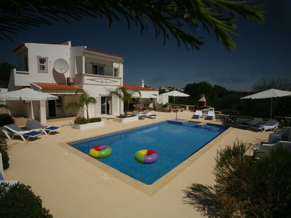 Hermosa villa espaciosa con 2 piscinas ubicadas en una zona tranquila, no muy lejos de Algarve Shopping y la bulliciosa Albufeira. Disfruta de las impresionantes vistas panorámicas desde las grandes terrazas. El lugar ideal para relajarte y disfrutar de la privacidad con amigos y familiares. ¡Todos son bienvenidos para unas vacaciones maravillosas!