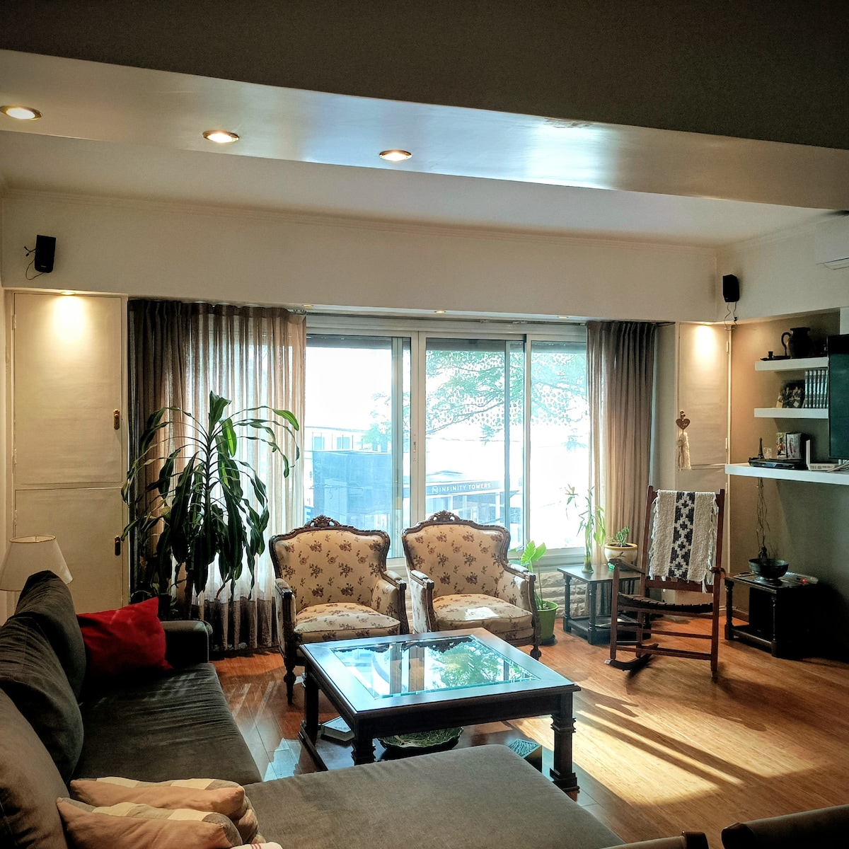Es un departamento elegante, amplio (60 m2) y luminoso en un antiguo edificio de Recoleta, con una excelente ubicación para vivir una experiencia porteña con espacios verdes, rodeado de museos y restaurantes. Está muy bien decorado, lo que lo ha llevado a ser publicado en revistas de decoración relevantes. Tiene un pequeño balcón que mira a una plaza pequeña (Plaza del Lector II). La Biblioteca Nacional esta a media cuadra en diagonal.