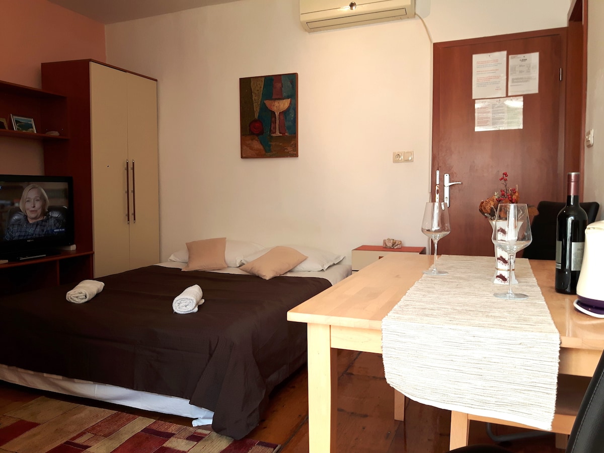 El apartamento tipo estudio se encuentra en la plaza principal del casco antiguo de Pag, cerca de la iglesia de Santa María y el palacio del Duque, a 50 metros de la orilla y a 200 metros de la gran playa de arena. LAS VENTANAS NO TIENEN VISTAS A LA PLAZA DE LA CIUDAD. LA PLAYA DE ZRĆE ESTÁ A 20 KM DEL APARTAMENTO.