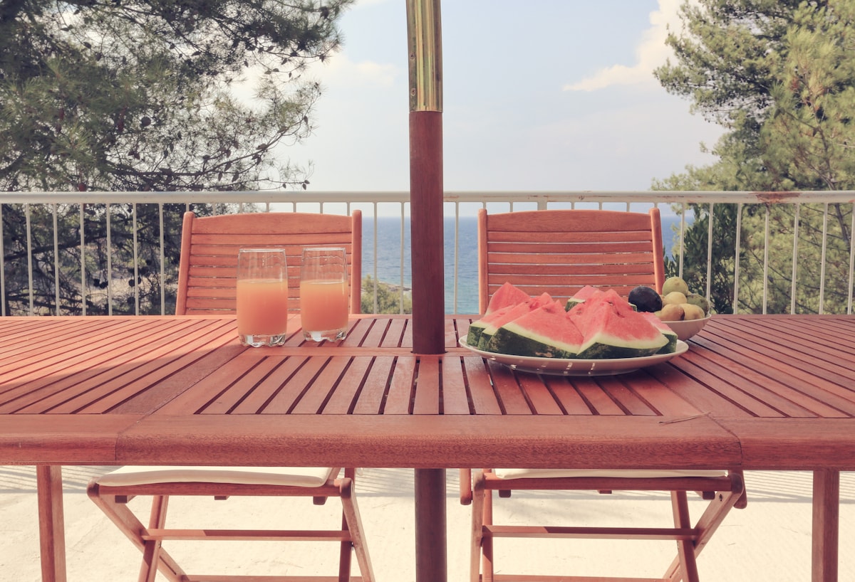 Casa de playa en Sarbun: terraza privada y vistas al mar