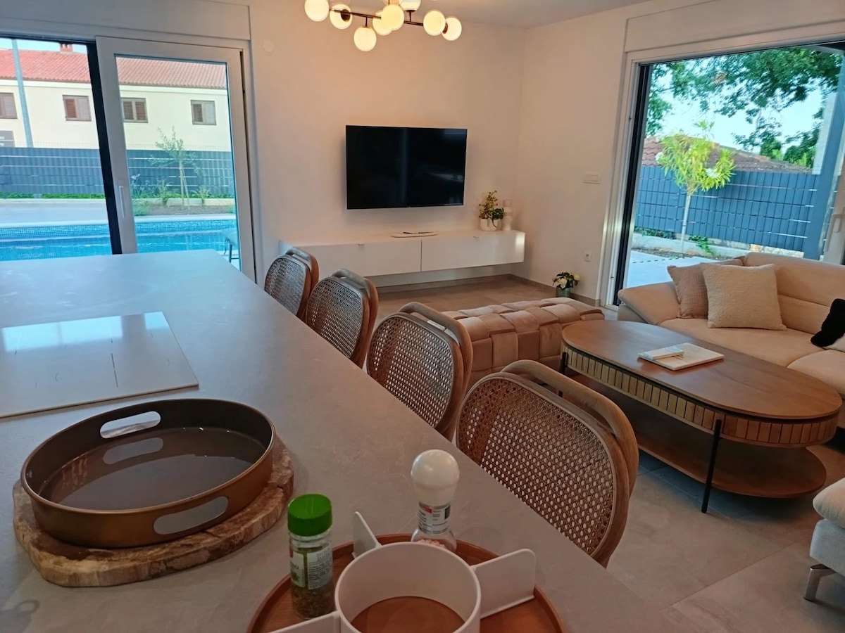 Apartment GioAn, in Novigrad, free parking, 7 minutes walking distance from the beach, close to the city center and all facilities such as supermarket, pharmacy, fish market, restaurants.. 2 bedrooms, bathroom, living room (with sofa bed), fully equipped kitchen (microwave, blender, espresso machine, oven, dishwasher, kettle, fridge, freezer, wine fridge), front covered terrace (with all el. blinds) with outdoor kitchen, BBQ area, private heated Jacuzzi. *BREAKFAST IS OPTIONAL (20€ per person)
