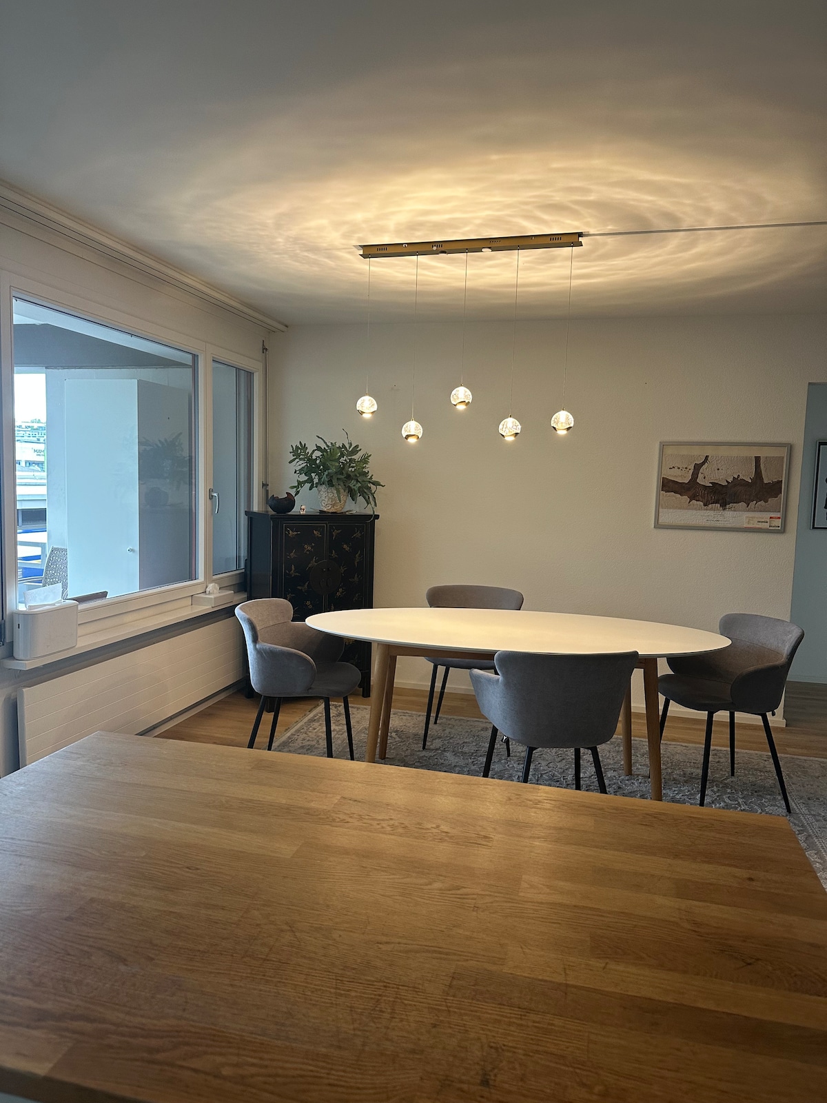 Este moderno apartamento recién terminado cuenta con una ubicación inmejorable. A solo 5 minutos en coche del aeropuerto y a 2 minutos a pie de paradas de tren y autobús, así como de encantadoras cafeterías, restaurantes y tiendas de comestibles. Disfruta de la comodidad de un rápido viaje en tren de 15 minutos al centro de la ciudad de Zúrich. Perfecto para viajeros que buscan comodidad y accesibilidad, incluidas las familias. El nuevo edificio cuenta con todas las comodidades modernas para una estancia excepcional. Anfitriones amables a la espera de preguntas y recomendaciones.