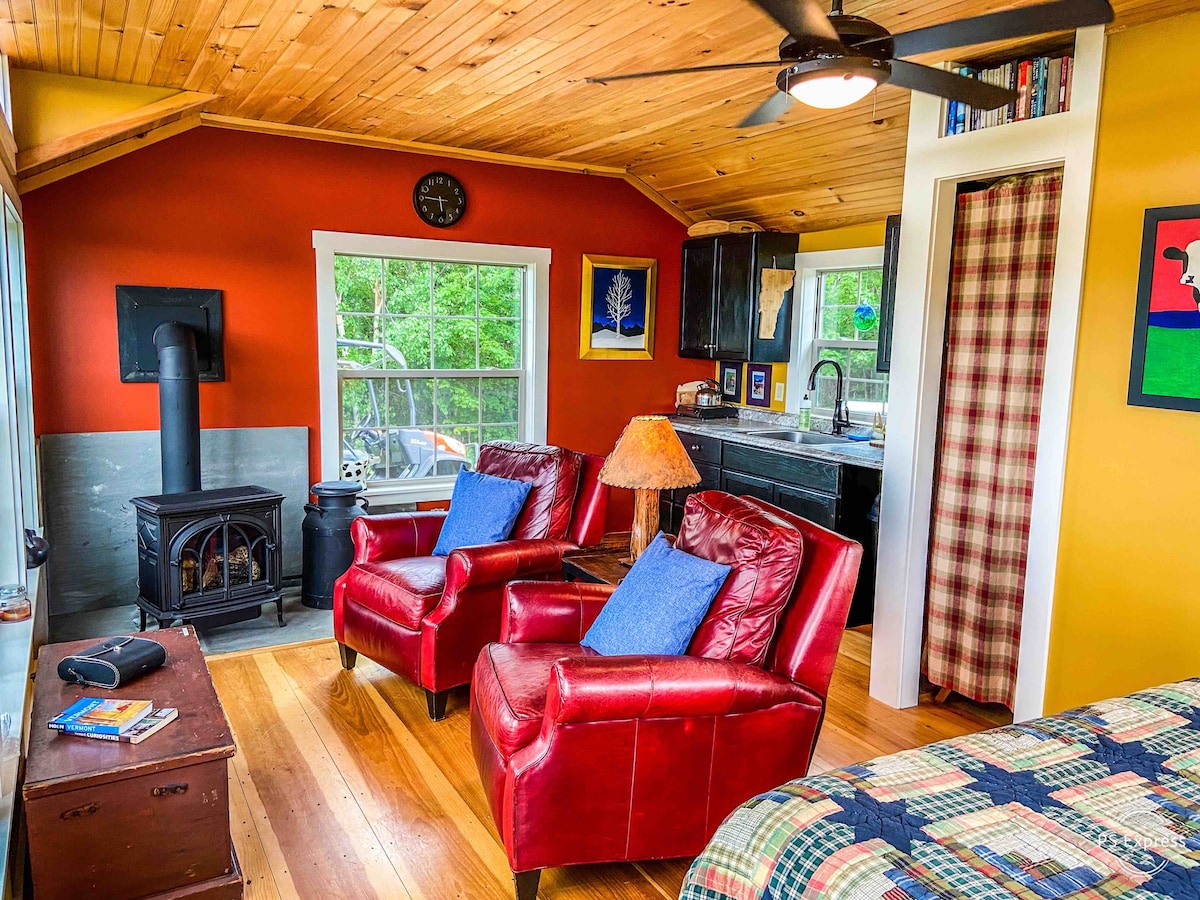 Te damos la bienvenida a Moonlight Mountain Farm, un alojamiento rural tranquilo en Vermont. Desconéctate y recarga energías rodeado de bosques, campos y aire de montaña. Este estudio privado de concepto abierto está diseñado para parejas o grupos pequeños que buscan tranquilidad, comodidad y una verdadera escapada rural; cuenta con jacuzzi interior, vistas al estanque y a las montañas, y sauna exterior opcional. Tanto si vienes a esquiar, a hacer senderismo, a montar en bicicleta o simplemente a relajarte, este es el lugar ideal para recargar energías.