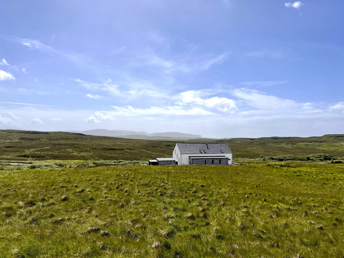 El estudio es un edificio ecológico contemporáneo, acogedor sea cual sea el clima, con una estufa de leña. Ha sido diseñado por los galardonados arquitectos Rural Design. El estudio está cerca de las montañas de Cuillin, la destilería Talisker y el lago Bracadale. Puedes salir del estudio directamente al paisaje de la playa, los acantilados marinos y los hermosos bosques de abedules. El interior está cuidadosamente y bellamente diseñado. Es un gran espacio para parejas y aventureros solitarios. Ofrecemos conexión a internet wifi.