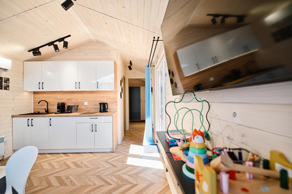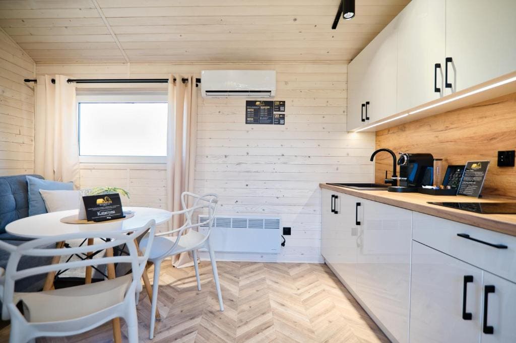 La exclusiva casa n.º 8, abierta todo el año, es una combinación de comodidad, modernidad y una ubicación única, justo al lado de Energylandia, con una terraza con vistas a las montañas rusas, equipada con barbacoa y tumbonas. La cabaña tiene 45 m², baño privado, sala de estar con cocina americana y dos dormitorios con cerradura. Está diseñado para 8 personas con la posibilidad de una cama adicional para 1 persona por una tarifa adicional.