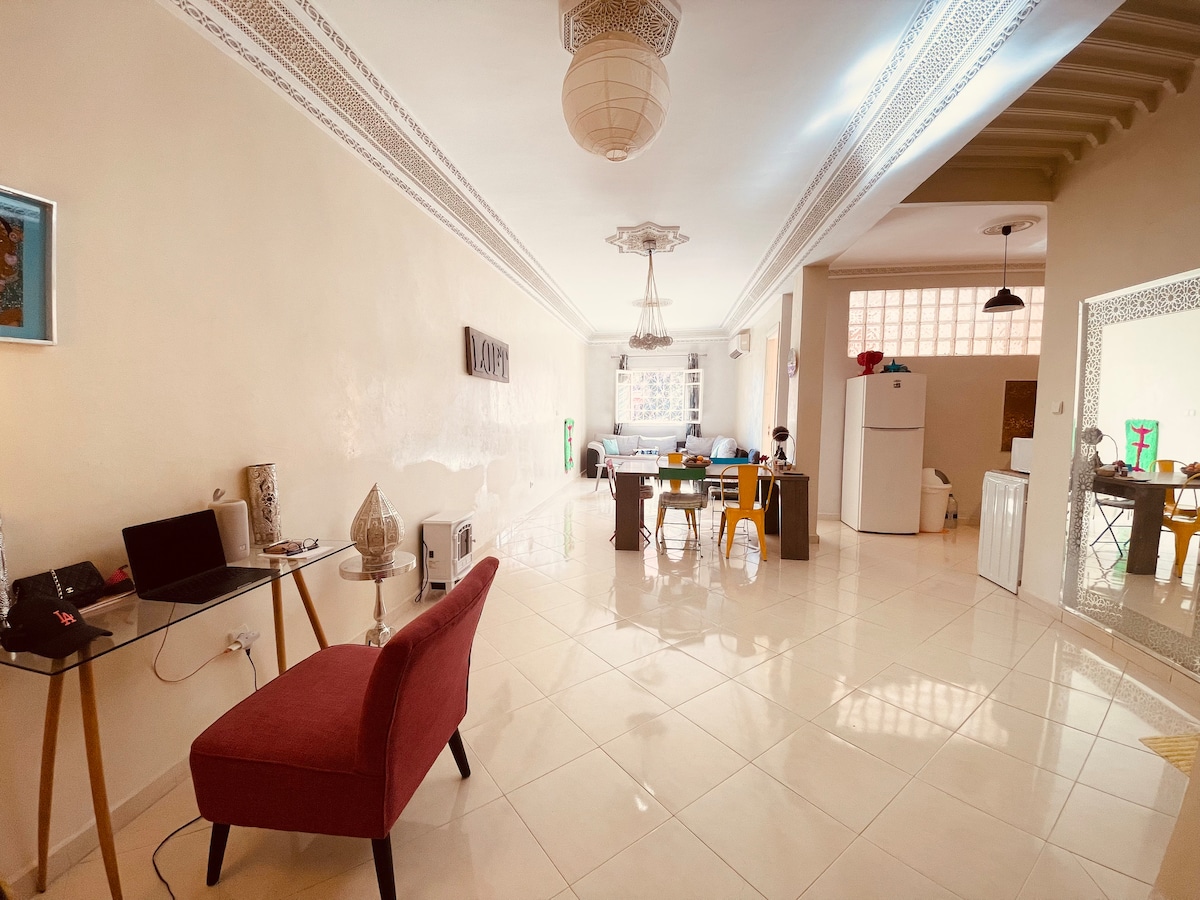 Mon appartement est situé au coeur de Marrakech, dans un villa composée de 3 appartements. Au 1er étage, il dispose d'une grande pièce commune de + 50m2, comprenant un espace salon, une salle à manger. La cuisine est ouverte est équipée. L'appartement est dans l'esprit "Loft" 2 chambres dont une avec balcon, exposée sud/ouest et une grande chambre traditionnelle. 95m2 env. Fonctionnel, calme et lumineux. Hammam h/f à côté. A deux pas du jardin Majorel et du musée YSL. Proche de tous commerces.
