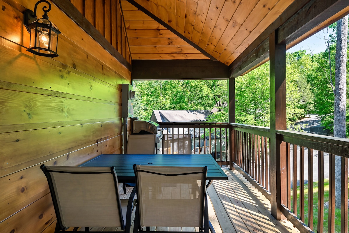 2 king suites - each bedroom has its own bathroom Min age requirement is 25 years old (excluding children with parents) FEATURES: -Fast WiFi -Smart TV in living room - log in to your account to watch your favorite shows snuggled up in the mountains! -Modern furniture -Washer & Dryer -Full kitchen w/new granite countertops -Easy FLAT parking for 2 cars (no steep driveways on a cliff) -Hot tub -Wrap-around porch -Access to resort picnic areas and community swimming pool (pool is now closed)