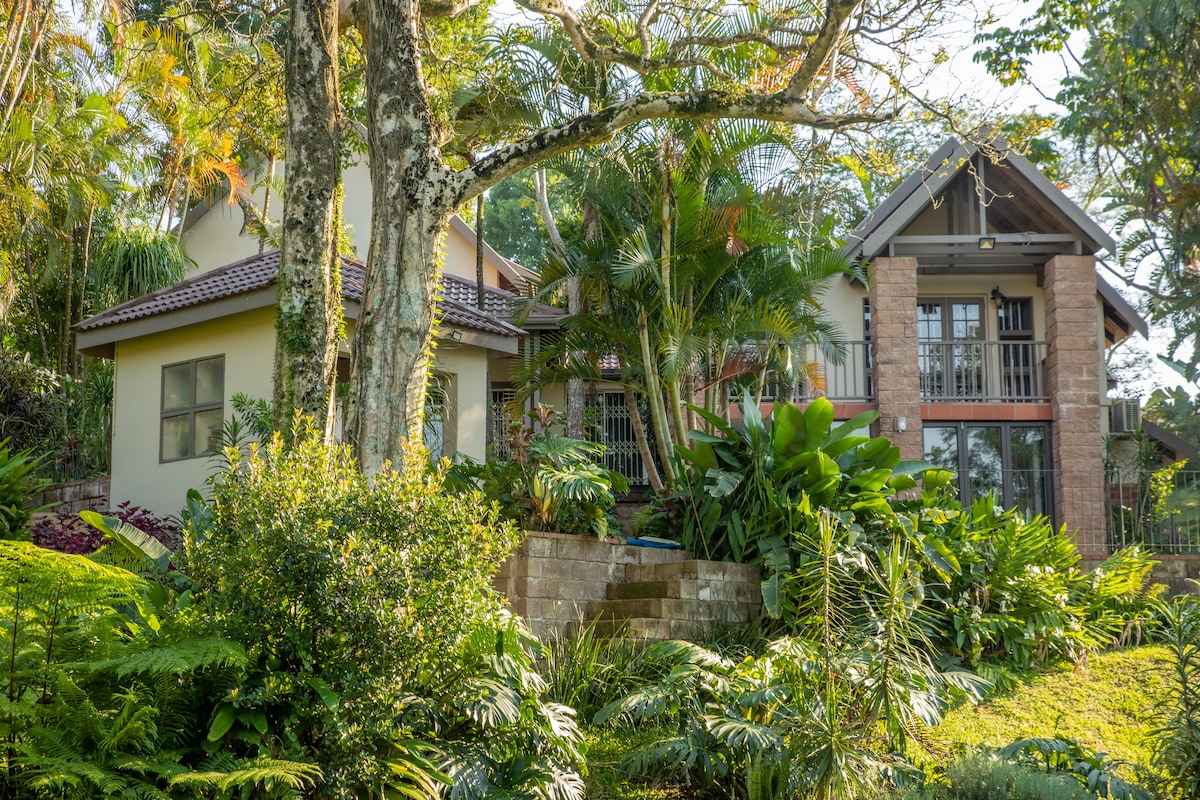 Esta casa familiar muy querida es un espacio increíble de paz y tranquilidad. Está diseñada para la vida al aire libre con una hermosa terraza, zona de pérgola para comer al aire libre y amplios jardines con una piscina de entrenamiento. La zona es segura y cómoda, con acceso a excelentes restaurantes y comida de la autopista. La casa viene completa con sistema solar completo, wifi, un área de trabajo y un ayudante para que puedas relajarte. Céntrica a la playa de Durban (20 minutos), Umhlanga (25 minutos), el aeropuerto (40 minutos) y las tierras medias/Drakensburg.