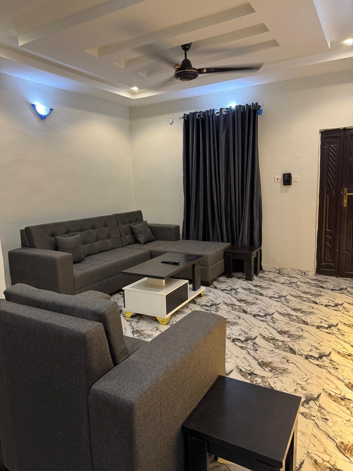 Este elegante departamento ofrece un dormitorio cálido y cómodo, también una zona de trabajo grande y espaciosa, un baño privado único, una cocina totalmente equipada, un ventilador de techo, un aire acondicionado, un refrigerador para enfriar y proporciona una agradable comodidad. Además, tiene una amplia zona circundante con suministro ininterrumpido de electricidad y agua. Ubicado en un entorno urbano, proporciona un cómodo acceso a un mercado cercano, un gimnasio totalmente equipado y tiendas operadas por vecinos amables.