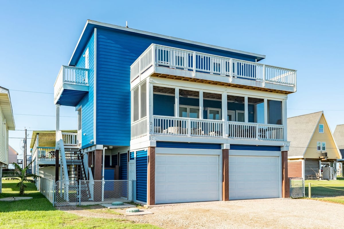 NEW Beachfront Construction! Truly a Unicorn:🦄 LOCATION, LUXURY, and So Nice to Have NEW! Located steps away from the best restaurants and beach in Surfside! Enjoy hammocks and games under the house. Climb the steps to an awesome shaded deck with views from San Luis Pass all the way to the Jetty! More than 180 degree unobstructed views. Bedrooms open to SunDeck and stargazing with fire 🔥 pit YouTube Beachfront Luxe for video $125 cleaning fee and only $75 total for up to 2 pets for whole stay!