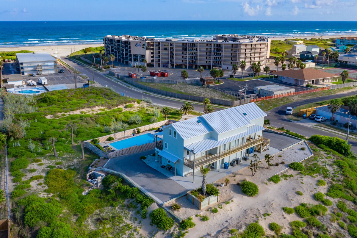 This is a beach front property on North Beach. Sunrise views. We are the only beach house on the beach. This is close proximity (5 min drive) to the Texas State Aquarium & Lexington Museum or use the beach walk from outside the home all the way down as well. Fishing area & play area is walking distance. Great place to enjoy the sun and the beach ! This house is clean and ready to enjoy your vacation. We have another house across the street to accommodate more guests up to 8 more, message me.