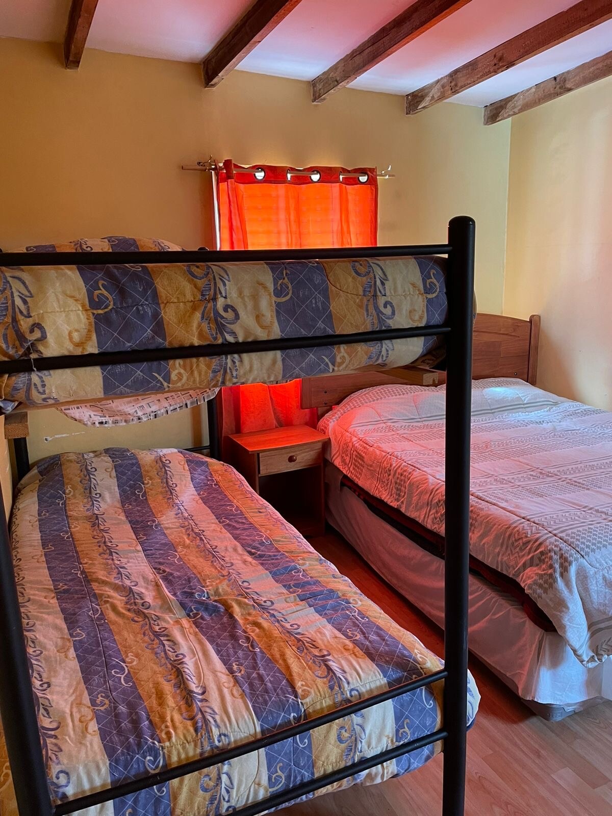 Este alojamiento rustico, tiene mucho espacio para que disfrutes con tu pareja o amistad, descubrirás espacios únicos e inigualables, cada mueble y espacio esta pensado para entregarte una experiencia inolvidable de sensaciones y momentos increíbles, contamos con una tinaja de agua caliente (pago) adicional inserta en una noria cubierta de totoral natural, experiencia única.