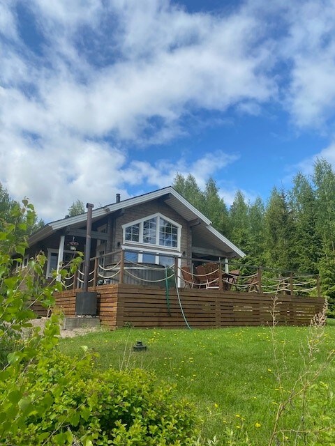 When you want peace and quiet with great views, this is your place! A few years old unique log cabin by the Vesijärvi lake. There is also a wood-heating lakeside sauna with great views. Location is only six kilometers from the Ironman WC cycle route and 20 km from Lahti center. Cabin includes two bedrooms with queen beds and sleeping loft upstairs with sofa bed and mattresses. You can also sleep at the lakeside sauna.