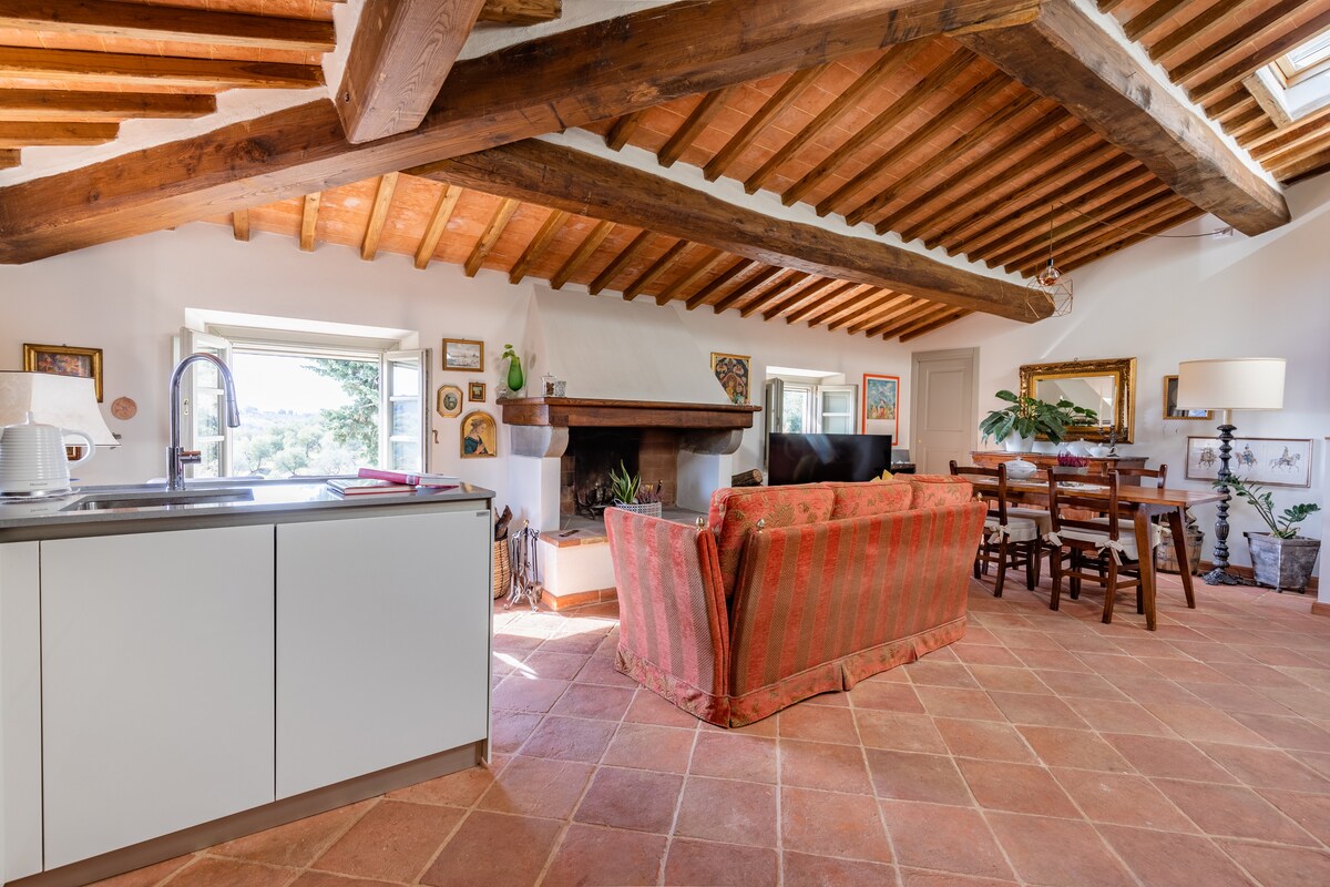 Casa al Poggio es una típica casa de campo de la zona de Chianti que se distribuye en 145 metros cuadrados en dos plantas. La planta baja es una gran sala de estar, con cocina y sofá, chimenea. Arriba hay 2 dormitorios dobles grandes y un sofá cama en la habitación abierta del medio, siempre configurable como 2 camas individuales o una cama doble y un baño relajante con ducha y bañera con vistas a Chianti.