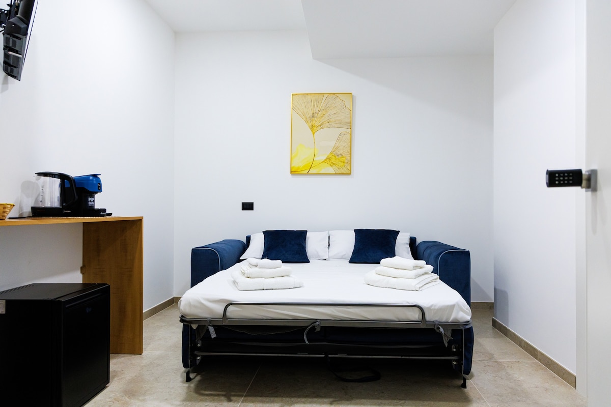Las habitaciones Sole e Amore en Casteldaccia ofrecen 45 m² de espacio y pueden alojar hasta 4 personas. Disponen de 4 camas y 1 baño, lo que las hace ideales para vuestra estancia. El alojamiento incluye un dormitorio con cama doble y otro con dos camas individuales. El aire acondicionado está en el dormitorio principal, el Wi-Fi es apto incluso para videollamadas, la TV os garantiza entretenimiento y el balcón privado es perfecto para relajaros.