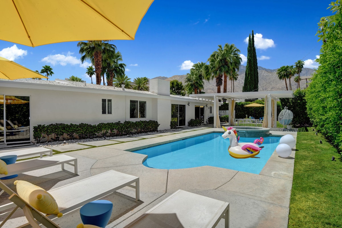 ¡Entre el 5 % de los mejores alojamientos y “FAVORITO DE LOS HUÉSPEDES” de Airbnb! Este impresionante alojamiento de 3 años te espera en el codiciado enclave de la ladera de The Mesa, a pocos minutos del mejor centro de P.S. La casa inspirada en la mitad del siglo tiene 3 dormitorios, 3 baños en suite, techos de 14 pies, puertas corredizas de vidrio, electrodomésticos Bosch, arte de grado de exposición, garaje para 2 autos, sala de estar hundida, chimenea, sofá al aire libre/ comedor, piscina de agua salada y jacuzzi. Ofrece un alto estilo, elegancia y privacidad. Propiedad y operada por un⭐️ Superanfitrión local de 5 personas.