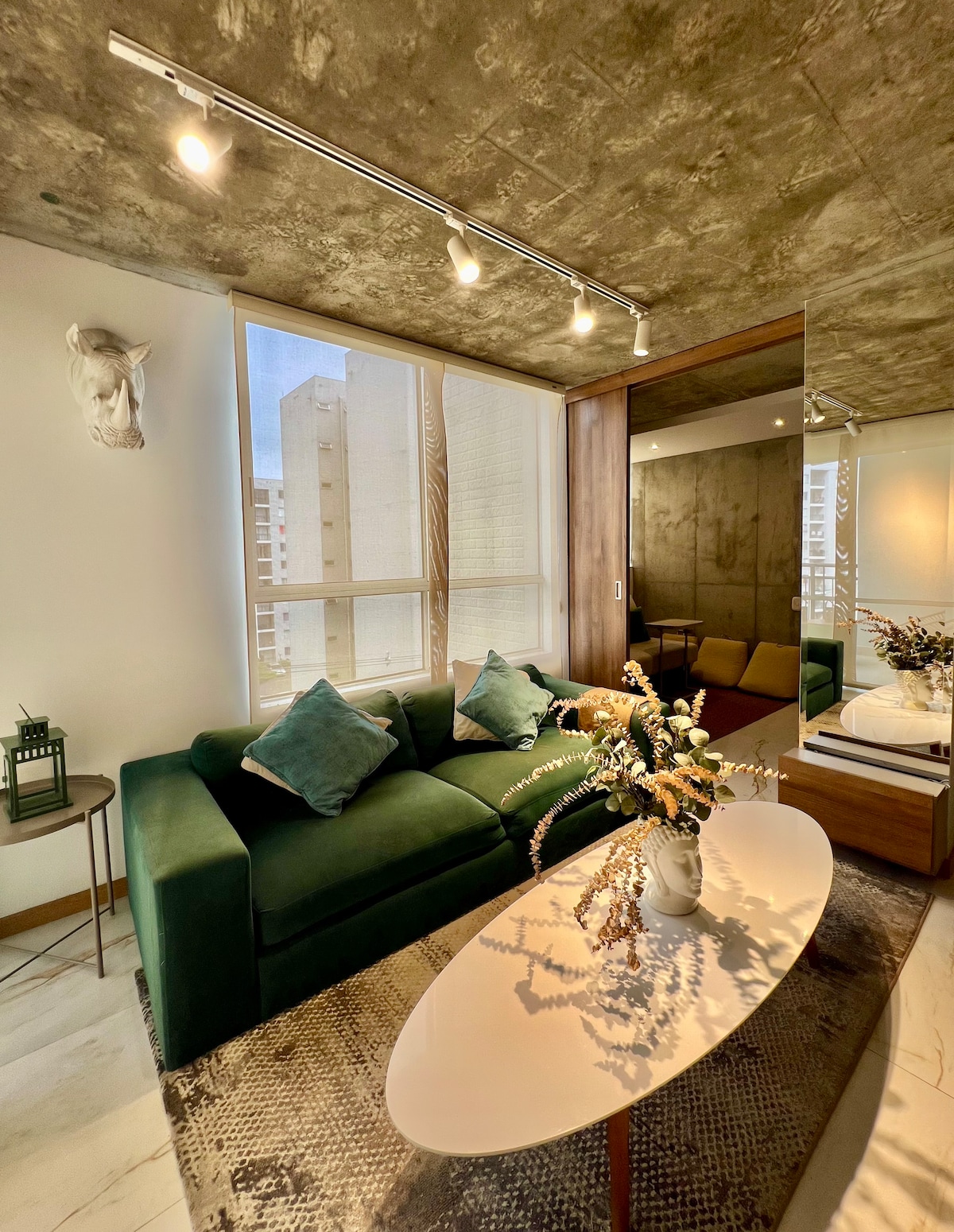 IG @bestairbnbcali (videos) A 7 minutos del centro de la ciudad encuentras este amplio apartamento con diseño nórdico en la mejor ubicación de la ciudad en el barrio centenario/granada cercano a todos los sitios turísticos, tiene terraza con vistas al oeste de Cali y al cerro de las tres cruces, Jacuzzi privado y pantalla de TV gigante, a una cuadra el mall centenario, cerca de bares y restaurantes. No se admiten fiestas por reglamentación de Airbnb.