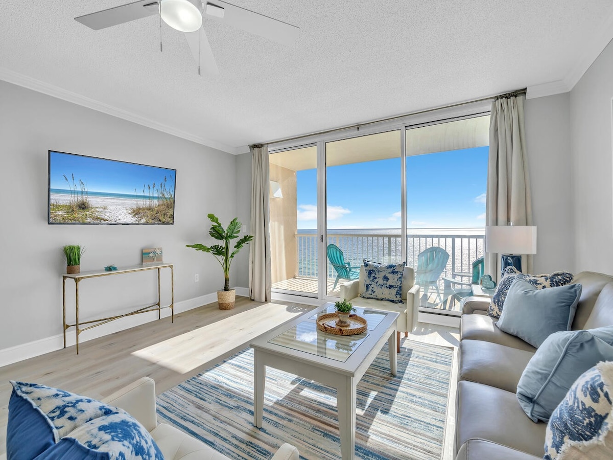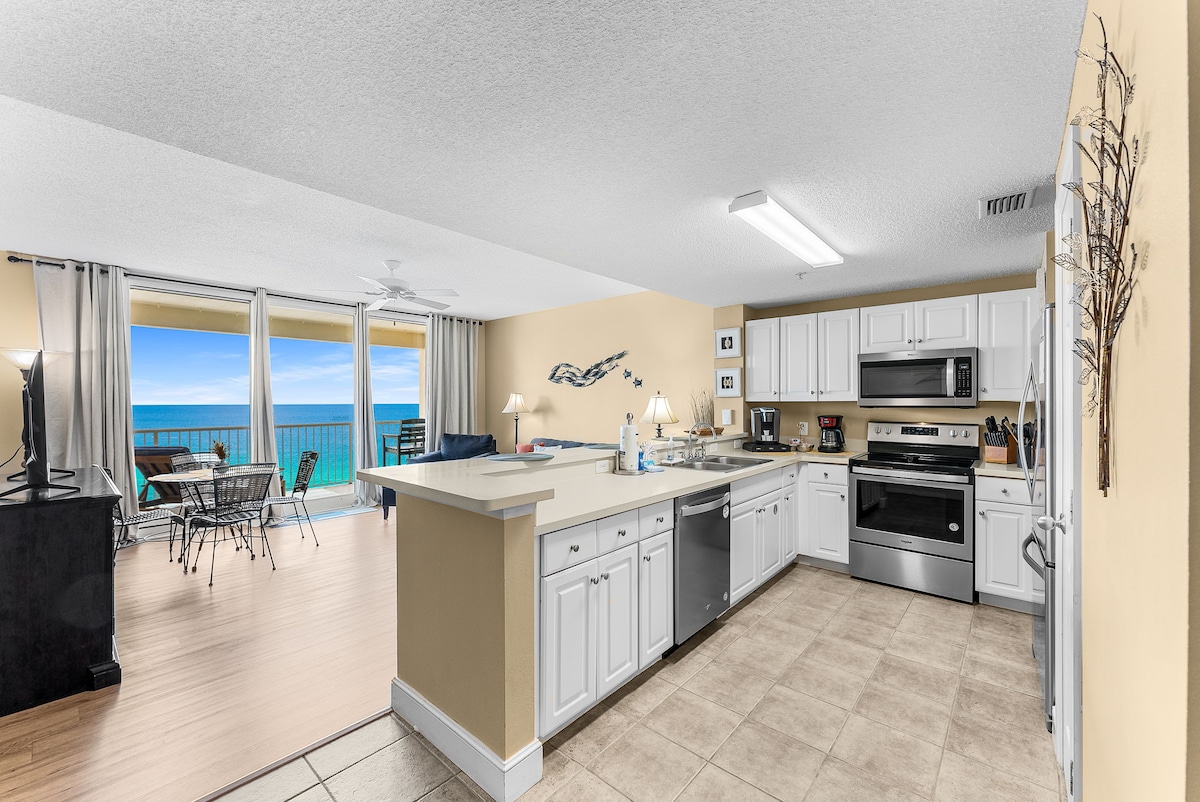 ¡Increíbles vistas impresionantes al mar y a la franja principal! Ubicación perfecta justo enfrente de la playa blanca azucarada y el océano. ¡A solo 15 minutos a pie del famoso Pier Park! ¡Puedes ver fuegos artificiales desde tu propio balcón! Hay varios restaurantes frente a la playa justo al otro lado de la calle. La cocina pequeña totalmente equipada tiene todo lo que necesitas para una estancia cómoda. ¡Acomoda hasta 4 huéspedes! **Hallazgo raro: ¡CHIMENEA en el alojamiento/Estacionamiento gratuito/Registro de entrada autónomo/Piscina climatizada/Jacuzzi!