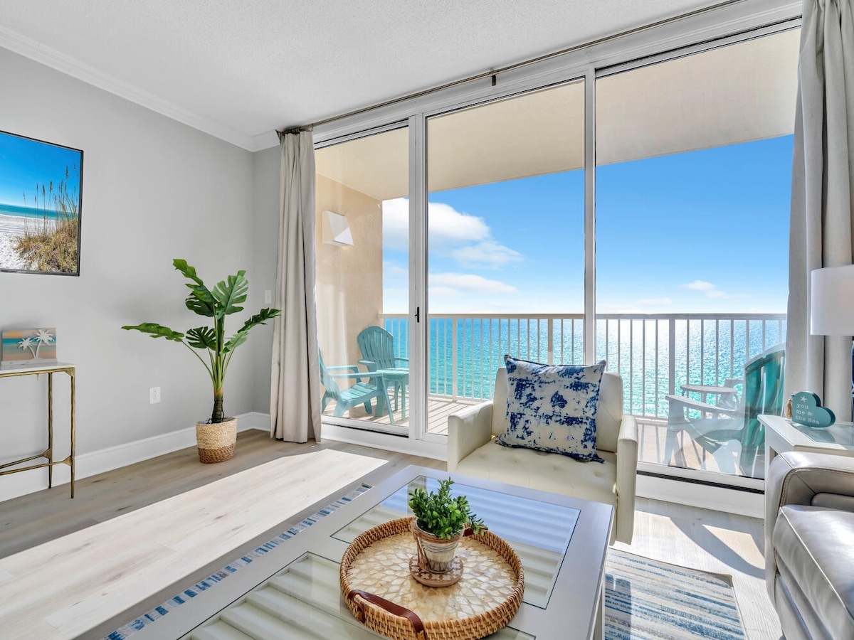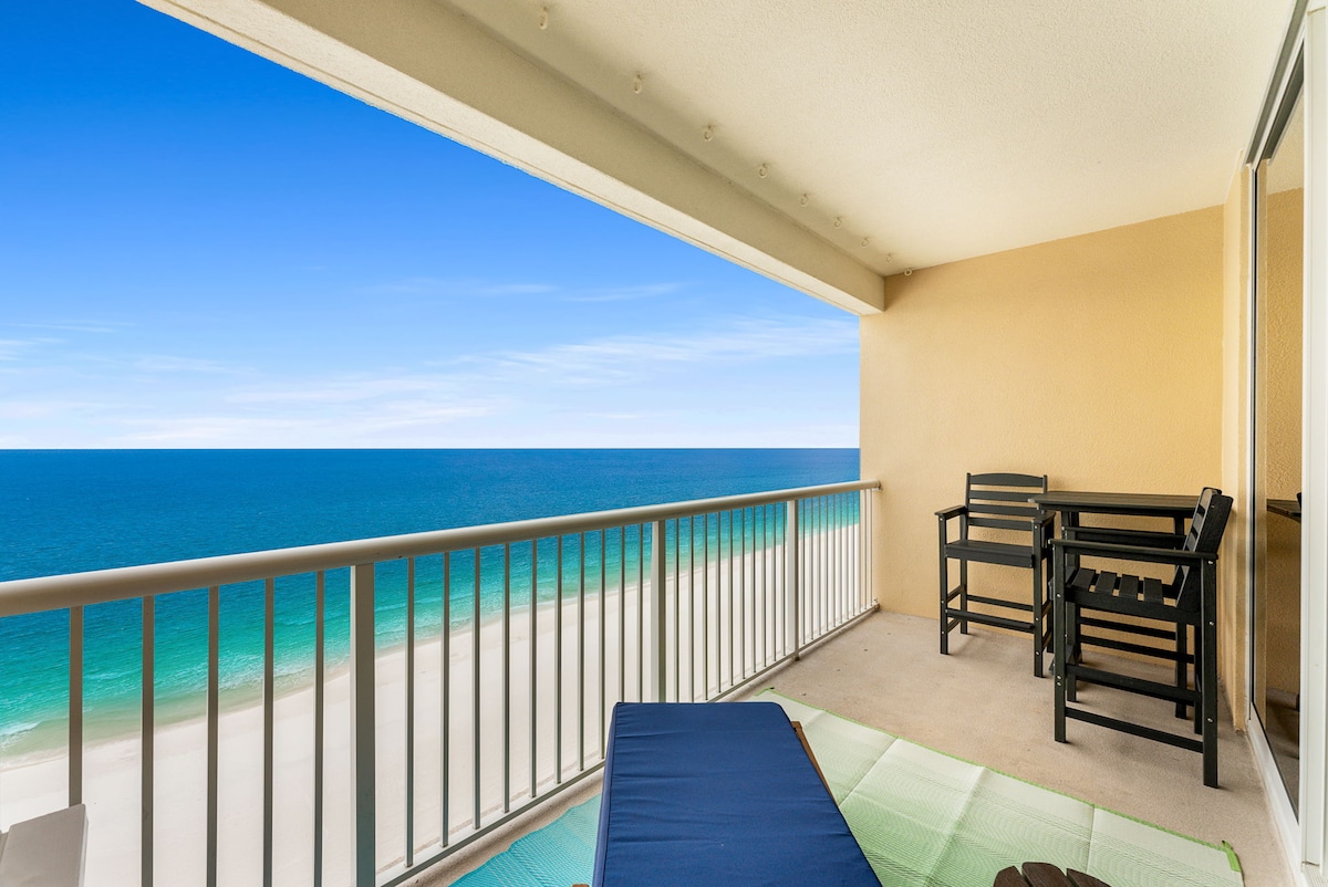 Escapada romántica frente a la playa en Majestic Beach Resort. Despiértate con impresionantes vistas al golfo desde tu balcón privado y relájate en una cómoda cama tamaño king a pocos pasos de la arena. ⭐ Acceso directo a la playa. ⭐2 tumbonas de playa + sombrilla incluida de (marzo a octubre) 9:00 a. m. a 5:00 p. m. ⭐Piscinas cubiertas y al aire libre + jacuzzi. ⭐Balcón privado con vistas al atardecer. ⭐Auto registro y seguridad las 24 horas. ⭐Ubicación privilegiada. Perfecto para parejas que buscan una escapada relajante y sin estrés en Panama City Beach.