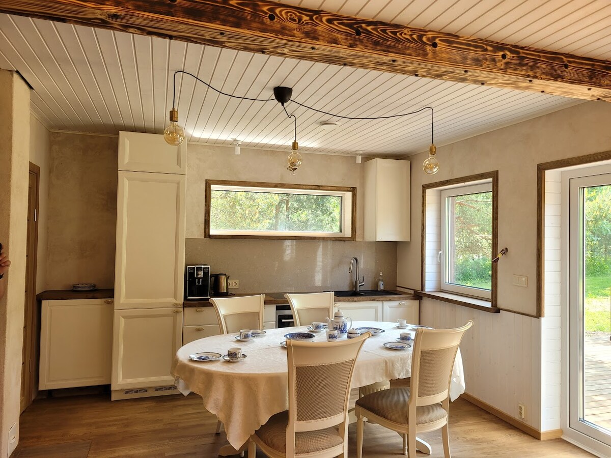 Villa Bumba es una villa iluminada y espaciosa de 250 m² en la mágica isla de Saaremaa que puede alojar hasta 10 personas (4 dormitorios + sofá) y está decorada con un hermoso estilo escandinavo. Cuenta con una cocina grande y bien equipada, parrilla de carbón para asados (es necesario traer tu propio carbón), una terraza grande y sauna. Es la opción más adecuada para amigos y familiares. Villa Bumba se encuentra en la isla de Saaremaa, a 175 km de Tallin (2 horas en auto + 25 minutos en ferry). Te damos una cálida bienvenida a nuestro alojamiento con tu perro 🤎
