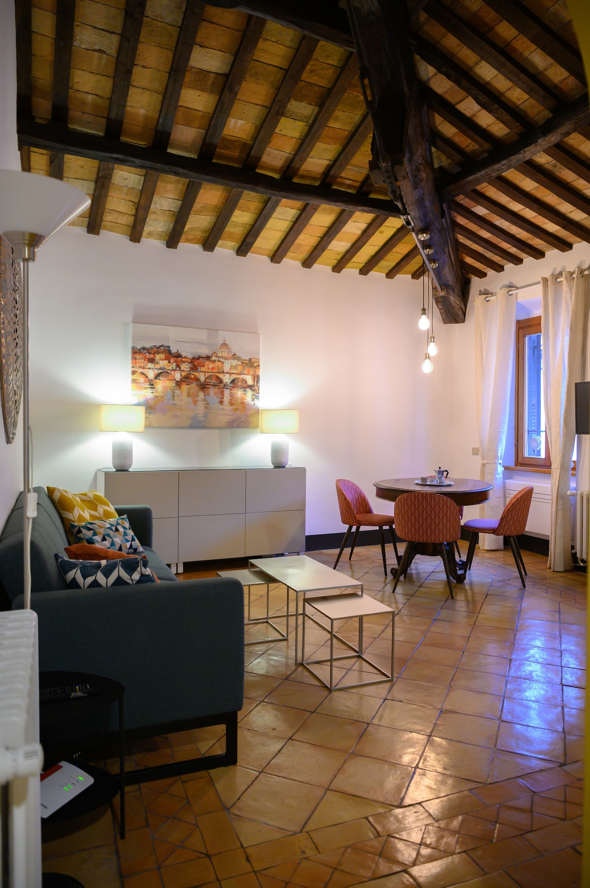 Auténtico y característico, en el corazón del centro histórico de Roma, Rione Regola, en una posición perfecta para visitar toda la ciudad a pie o en transporte público, el apartamento está situado en un edificio de época de una de las calles más antiguas y sugerentes, entre Piazza Navona (500 m), el Panteón (1 km) y Campo de' Fiori (400 m) a un lado del río y Trastevere (800 m) y la basílica de San Pedro al otro (1 km)