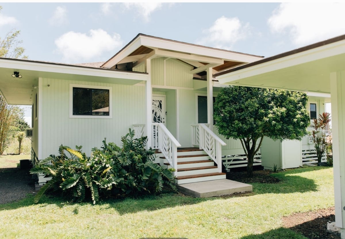 La casa hawaiana de estilo isleño es amplia, luminosa y abierta, con 2 dormitorios y 2 baños. Con excelentes vistas al mar. Ubicada en una zona rural en 1 acre de terreno privado vallado. Tranquilo y silencioso. A 1 hora y 15 minutos de Kona y a la misma distancia de Hilo. Lo mejor es obtener suministros en Kona o Hilo, ya que no hay tiendas de comestibles en Na'alehu. Está a 40 minutos del parque nacional del volcán Parque y a 15 minutos de la playa de arena negra de Punaluu, a 15 minutos de South Point y de la playa de arena verde. No hay wifi. El servicio de telefonía móvil funciona muy bien en la zona.