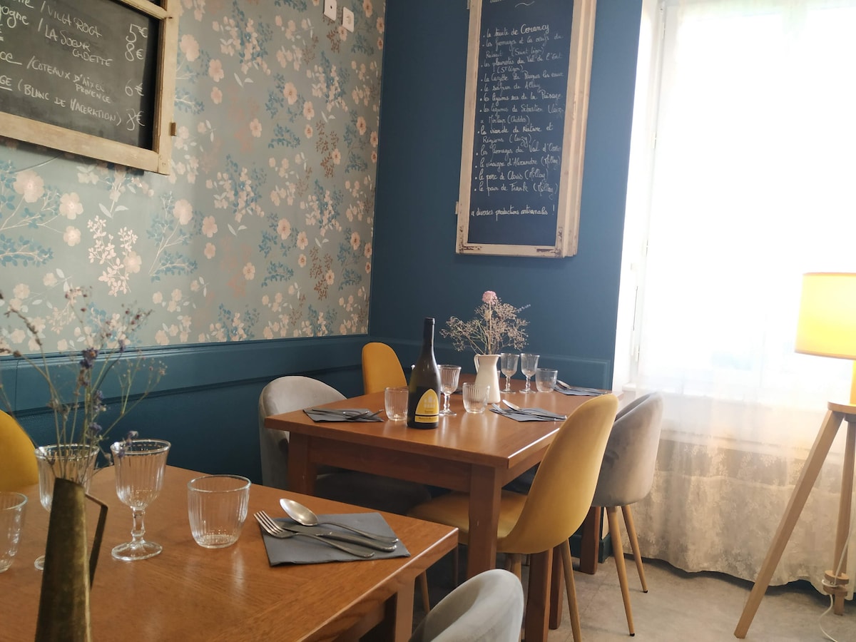 Para una estancia con encanto en la tranquilidad del Morvan, solo o en pareja, alquilo una suite (26 m²) con entrada y terraza privadas, aseo privado, vestidor, bañera abierta al dormitorio y cama de 160 x 200. Desayunos, sábanas, toallas y gastos de limpieza incluidos en la tarifa básica. Una pequeña cocina está disponible en las zonas comunes (fuera de la habitación) con placas de inducción, horno microondas y nevera.