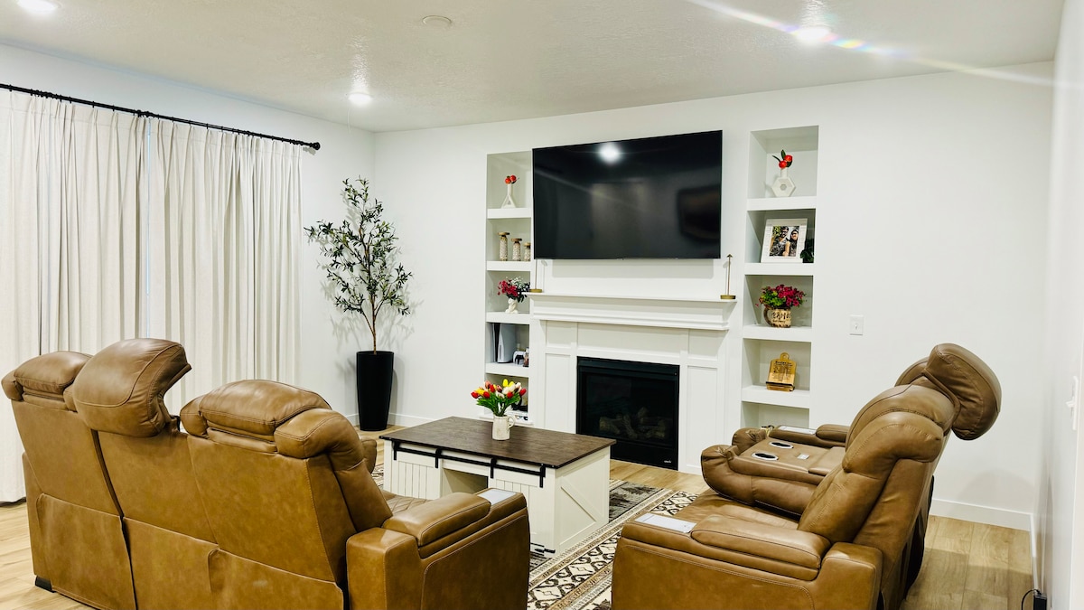 ¡Bienvenido a tu sereno refugio en la base de Steep Mountain! Una casa moderna que ofrece acceso inteligente, internet de fibra y estudio de trabajo. La cocina abastecida cuenta con encimeras de granito y electrodomésticos de calidad. Relájate en la sala de estar con un televisor OLED y una chimenea de leña, o disfruta de la gran terraza y la barbacoa. Todas las habitaciones ofrecen ropa de cama limpia y lujosa y vistas impresionantes. Hay estaciones de esquí de primera categoría a poca distancia en coche y el parque Point of the Mountain Flight Park está a poca distancia a pie. ¡Te espera un espacio limpio y contemporáneo!