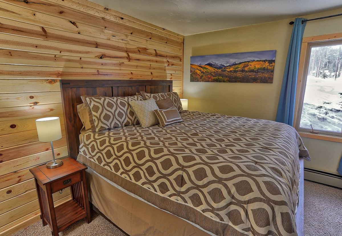 ¡Trae a toda la pandilla y disfruta de tu estancia en una ubicación inmejorable a solo unos pasos de Main St! Este apartamento recién renovado tiene capacidad para 9 personas y está a pocos pasos del pueblo y de S. Main St. Acomódate alrededor de la chimenea en nuestra espaciosa sala de estar o disfruta del café de la mañana en la terraza. Tendrás acceso al gran jacuzzi del apartamento, al gimnasio y a la casa club con ping pong, mesa de billar, futbolín y TV de pantalla grande. Tanto si te quedas en casa como si sales, ¡hay algo para todos los gustos!