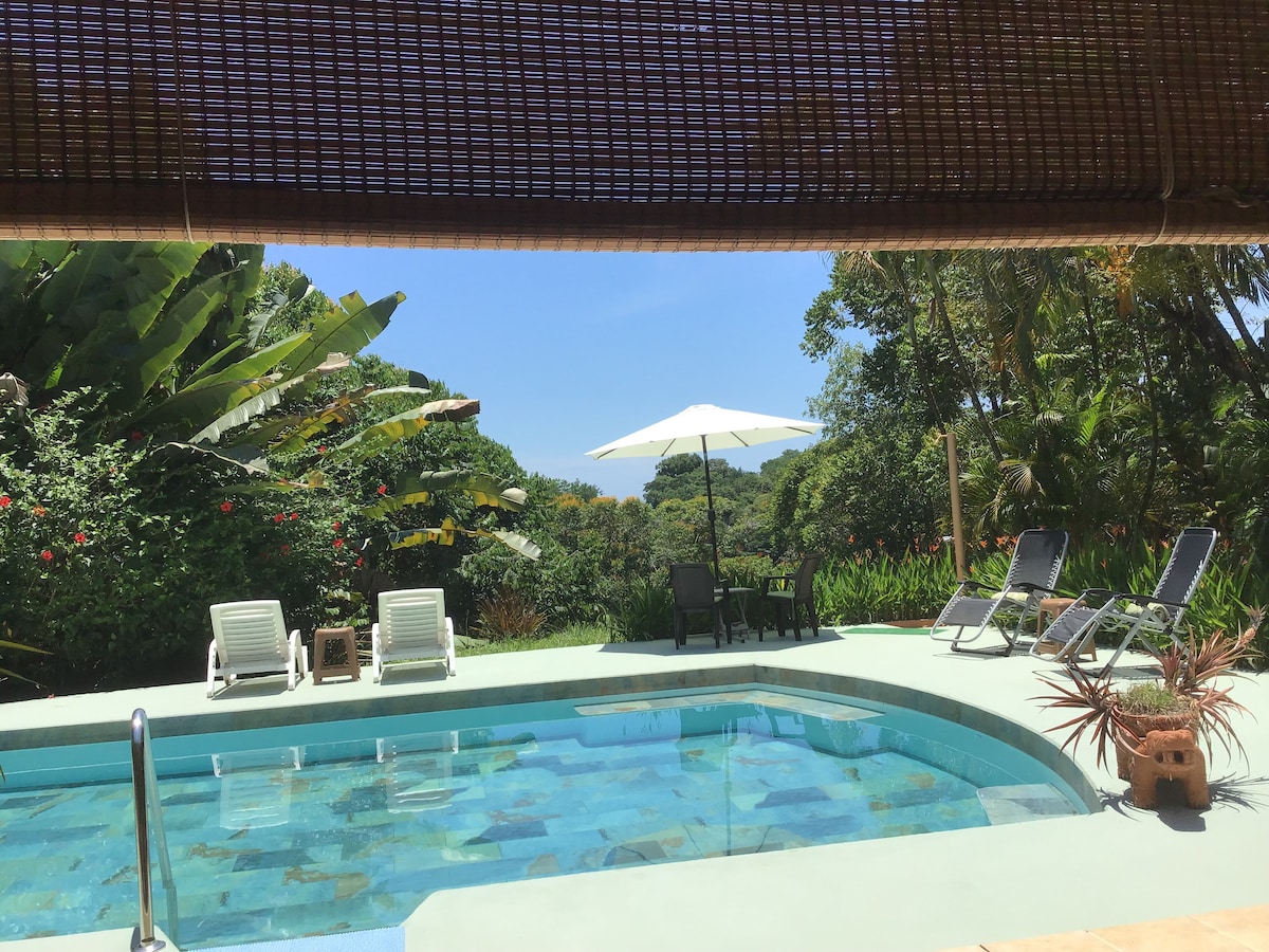 Clean, modern, private oasis in the middle of Dominical. Never miss a sunrise or sunset. Walk to the beach in 5 minutes. Restaurants, coffee shops, and nightlife are all within a few minutes' walk. Retire by the pool to read a good book or splash it up with the kids! Private, secure, gated parking. Easily accommodate a larger group by joining unit #2 and our container as well. Message us for details!