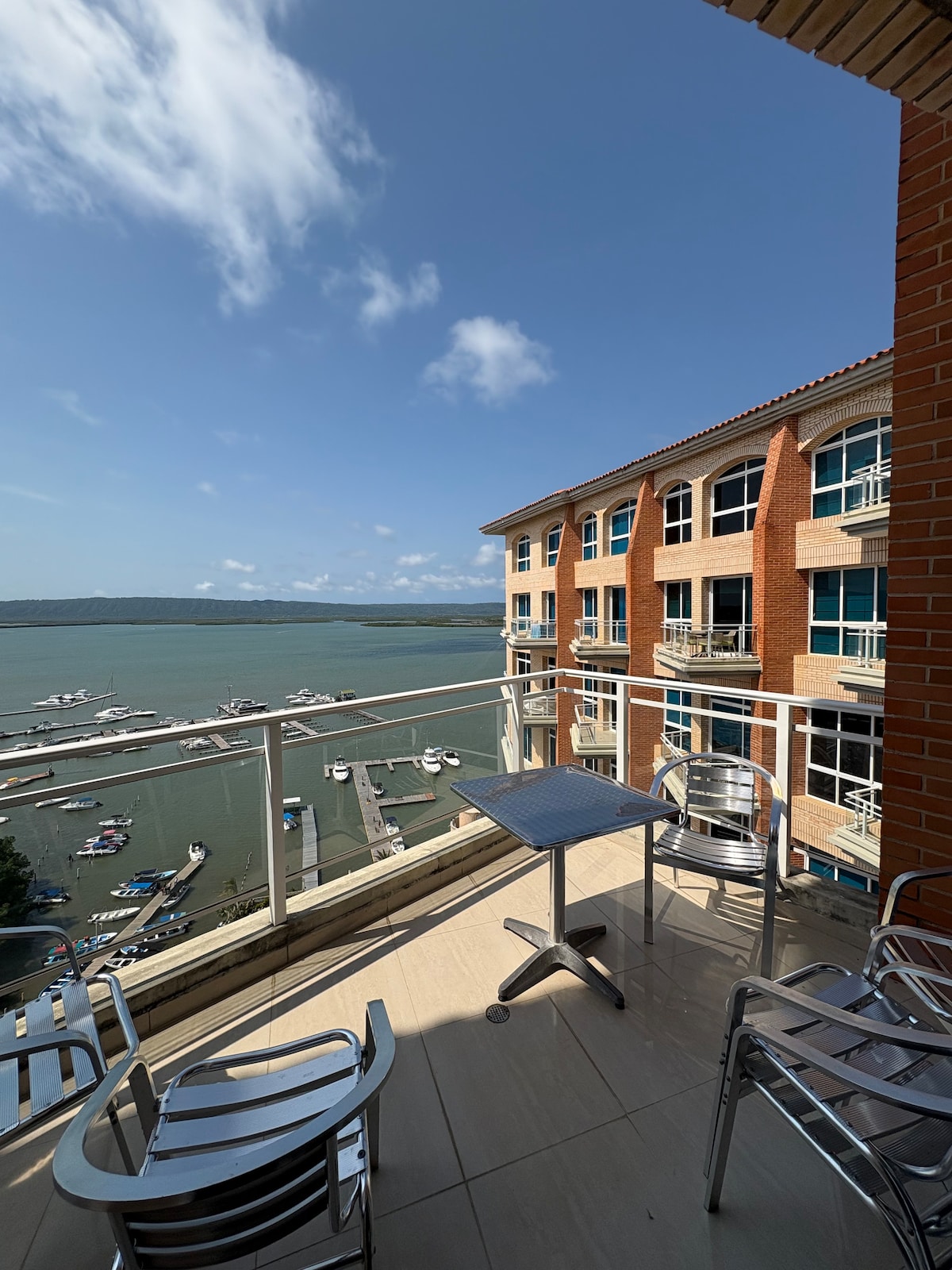 Apartamento con una vista espectacular y privilegiada en donde podrán disfrutar de los mejores atardeceres. Amplia terraza, ideal si vienen tambien con mascotas. Wifi El edificio cuenta con planta eléctrica para las áreas comunes y con pozo de agua profundo, además el apartamento tiene tanques de agua en caso de emergencia; (Solo aire acondicionado, nevera y una luz del apartamento se prenden con la planta) Ven a disfrutar las mejores playas de Venezuela, a solo 5 minutos de punta brava