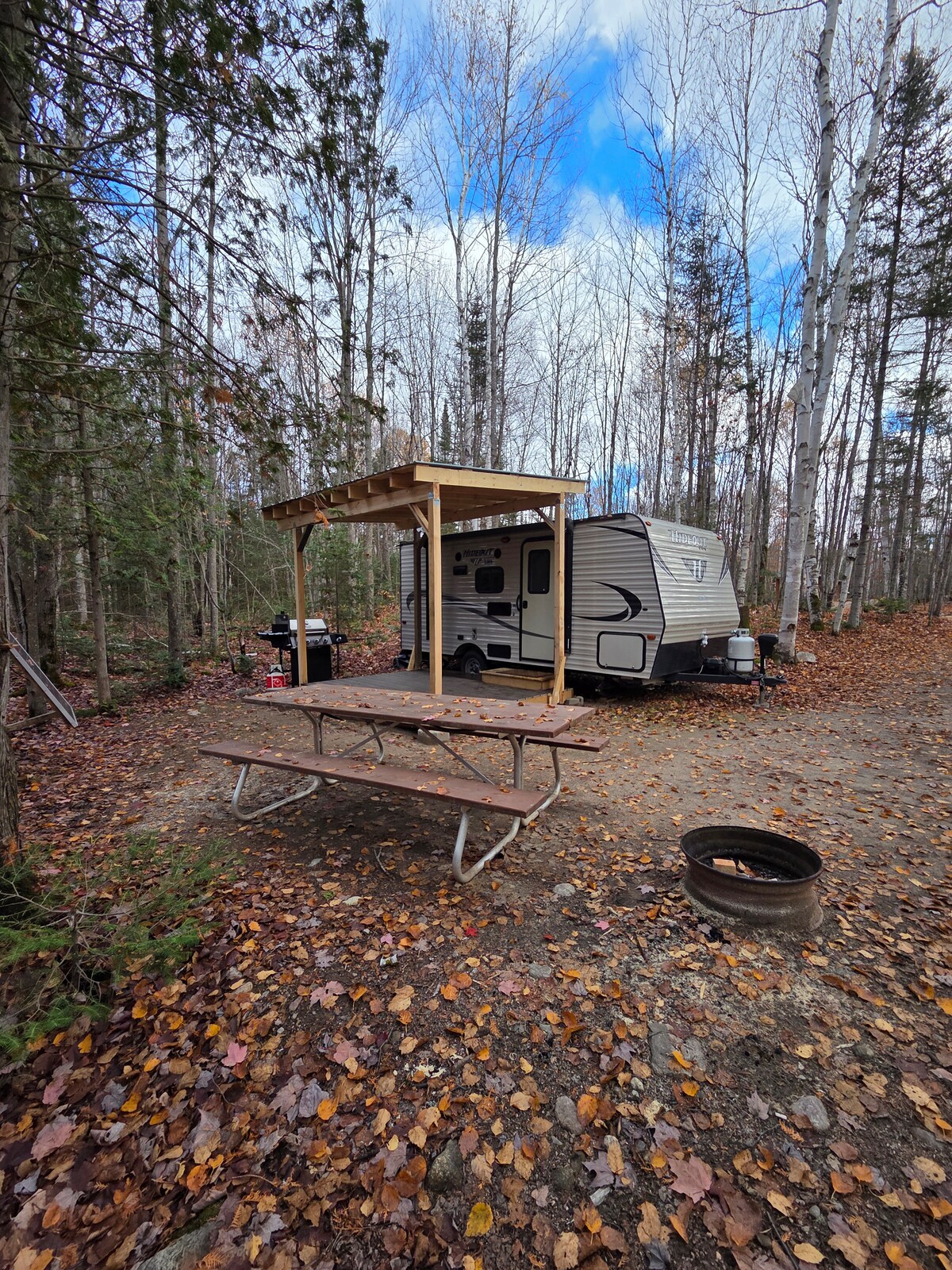 Vuelve a conectar con la naturaleza en esta escapada inolvidable. Esta acogedora caravana se encuentra en un lago privado y muy tranquilo. Tiene capacidad para 4 personas, con asignación para una tienda de campaña (debe proporcionar la tuya) para acomodar a más huéspedes. Pasa tus días relajándote en la arena, pescando o tomando la canoa en el agua. Hay una letrina ubicada justo al lado del remolque. Todos los enchufes del remolque funcionan, así como las luces y la estufa. Viene con tu propio muelle privado, una canoa, leña y una barbacoa de carbón.