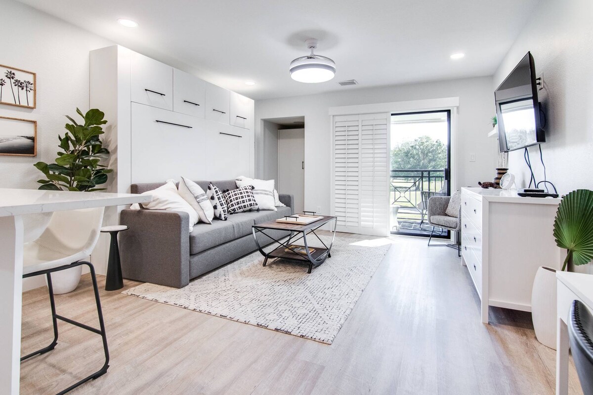 ¡Lujoso condominio de golf de 1 dormitorio con cama tamaño king y patio privado!
