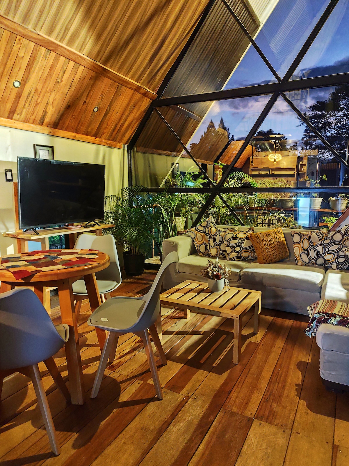 Duerme bajo la luna y las estrellas, entre majestuosos árboles y cerca a las impresionantes montañas del parque nacional yanachaga Chemillen. Nuestra cabaña de cristal ubicada en el cafetal de la villa Permacultural Oasis Blue te ofrece momentos de reconexión con la naturaleza. En la villa Permacultural encontrarás también una cueva para meditar, 250m de borde de río para bañarte, huertas orgánicas, gallinero... Dormir en nuestra cabaña de cristal es una experiencia única en Oxapampa.