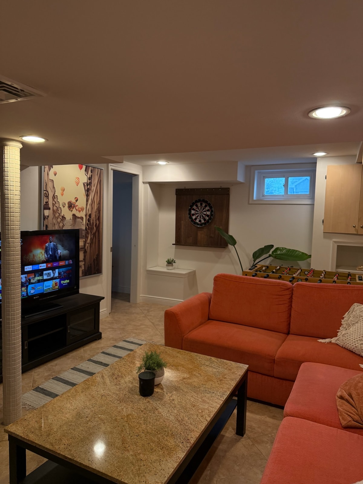 Este espacioso apartamento de 1 dormitorio y 2 camas de nivel inferior tiene alojamientos para entretenimiento y ejercicio. Tiene una entrada independiente y 1 estacionamiento gratuito en las instalaciones. Está convenientemente ubicada donde la calle lateral va directamente al centro comercial Garden State Mall y a Nueva York en autobús o en coche en minutos. Cocina totalmente equipada y wifi para un espacio de trabajo cómodo. En un esfuerzo adicional para garantizar que nuestros huéspedes estén cómodos, proporcionamos café y té para ayudarlos a comenzar el día con un buen pie hacia adelante.