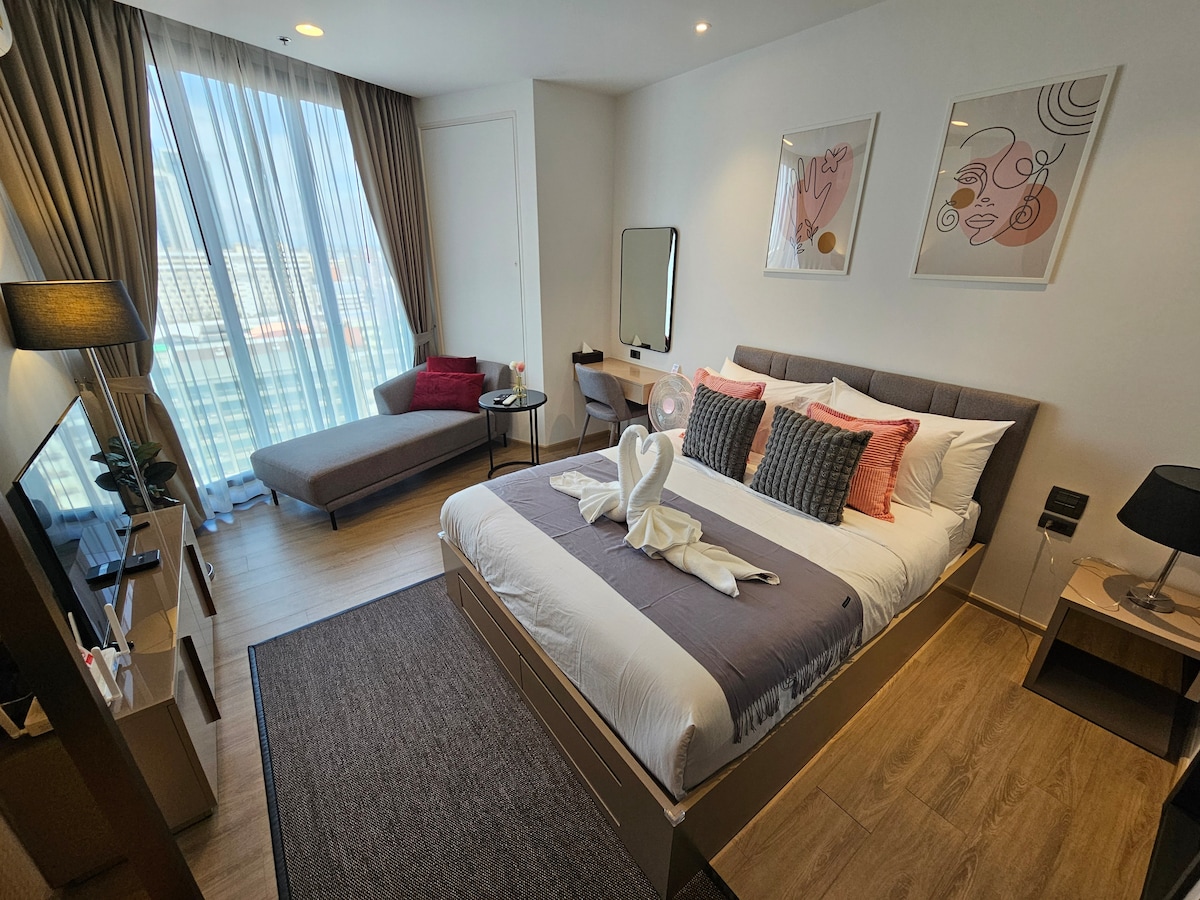 Acerca ◾️del edificio “Edge Central Pattaya” El buque insignia de Pattaya, situado en el centro, a 5 minutos a pie de las últimas zonas, como el centro comercial Central Festival y Tree Town Sobre la ◾️habitación Disfruta de las últimas comodidades significativamente mejoradas que son completamente diferentes de las otras habitaciones del condominio. [Nuevas e intercambiar artículos] Refrigerador con congelador grande de 300 litros Aire acondicionado moderno Inverter Inodoro con bidé totalmente automático Televisor inteligente 4K de 85 pulgadas Escritorio grande y negro [Nueva presentación] Última lavadora/secadora estilo tambor - Purificador de aire grande más nuevo Último secador de viento fuerte El último secador de curl ¡Es una habitación de 15F con vista frontal al centro comercial y Hilton desde los grandes ventanales de la habitación!(Puedes ver el mar un poco☺️) Acerca de las zonas◾️ comunes En el piso 30, hay un gimnasio en la azotea, salón social, mesa de ping pong, billar🎱, jacuzzi de agua caliente, pequeña piscina infinita, sauna seca, sauna de vapor, lavandería de monedas, servidor de agua y una gran piscina infinita en el piso 31. * Lamentablemente, no se permite estacionar.