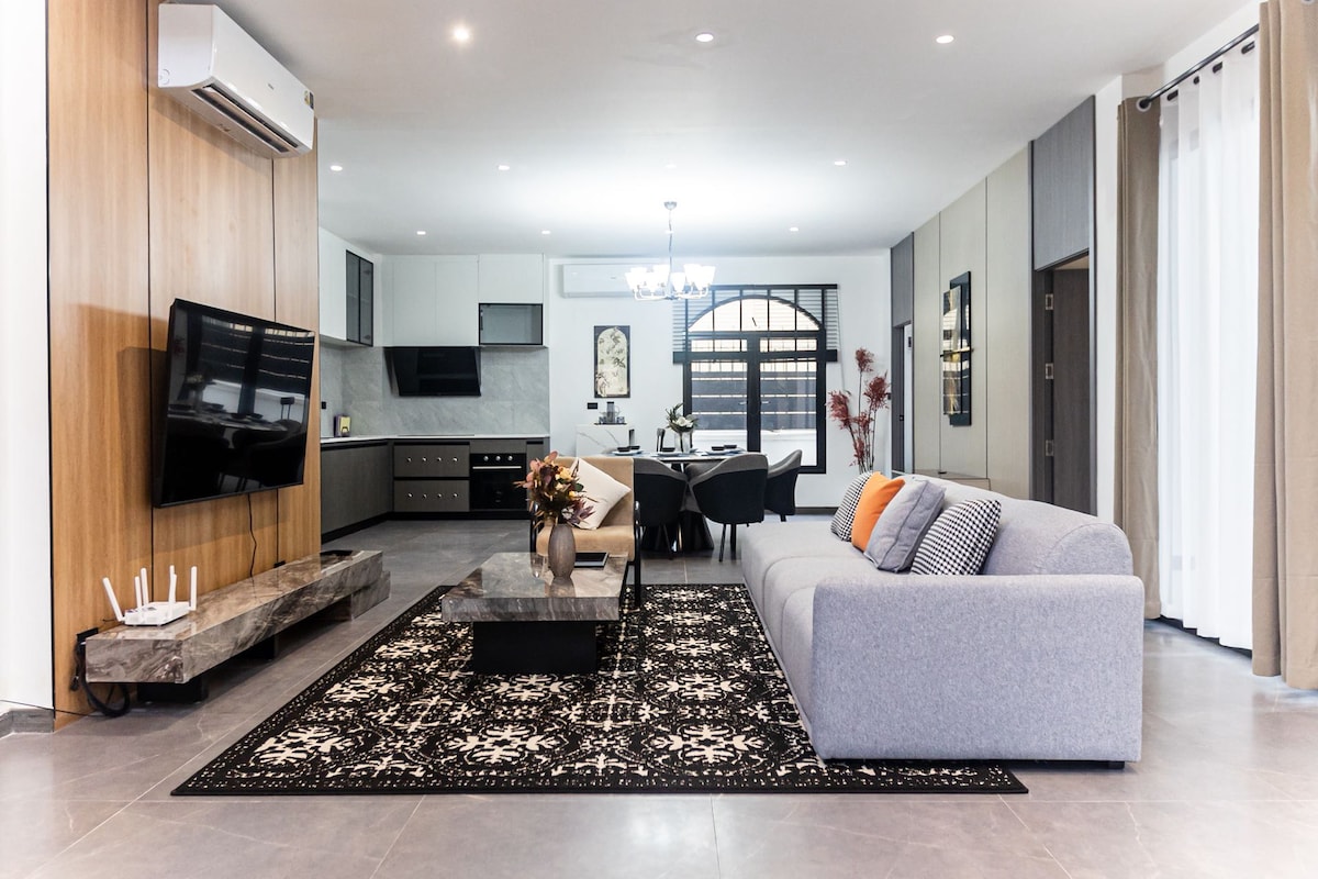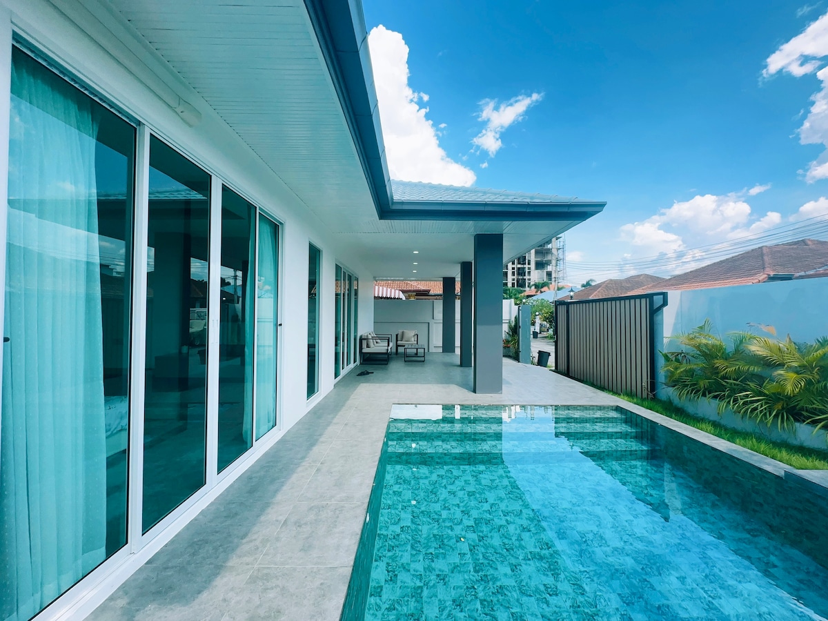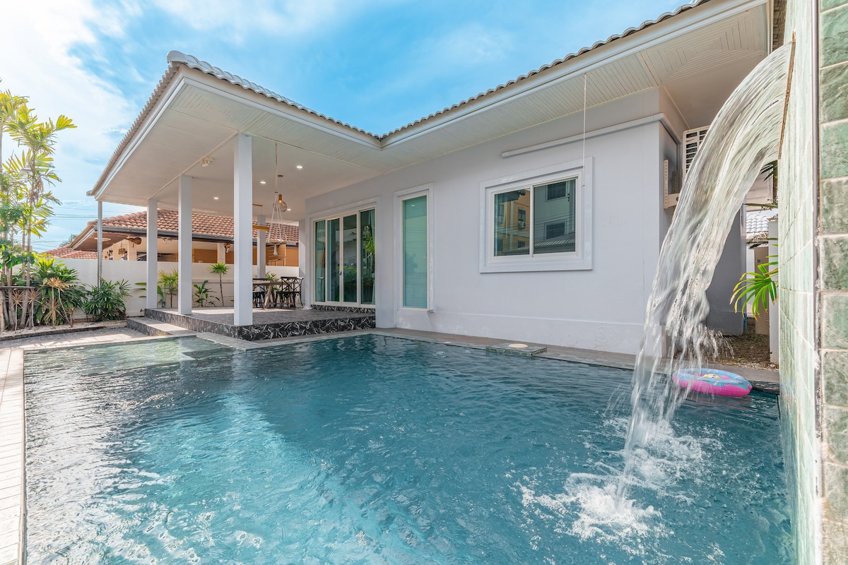 A solo 50 metros de la playa de Jomtien, esta acogedora villa de lujo con piscina es perfecta para familias o grupos de hasta 10 personas. Disfruta de 5 amplios dormitorios (4 king, 1 queen), 6 baños, una cocina completa y una cómoda sala de estar. Relájate con una piscina privada, parrilla para barbacoa y mesa de fútbol. Ya sea que estés cocinando, descansando o jugando, esta villa bellamente diseñada ofrece todo lo que necesitas para una escapada divertida y relajante junto a la playa.